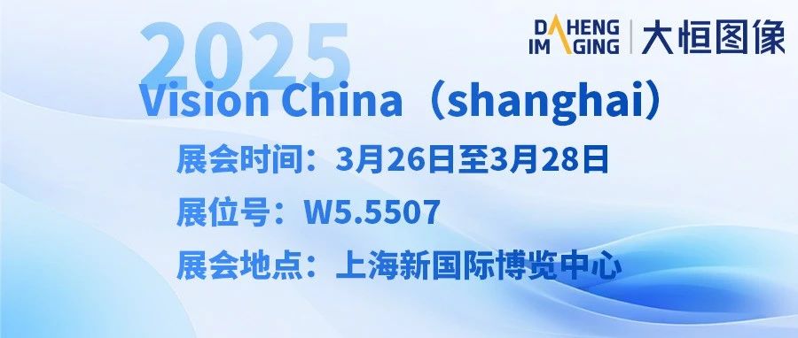 2025Vision China(shanghai)01展会介绍2025年中国(上海)机器视觉展暨机器视觉技术及工业应用研讨会Vision China (shanghai)将于3月26日至28日在上海新国际博览中心(上海浦东新区龙阳路2345号)隆重举办。本次展会,我们聚焦行业深度需求,精心打造15套视觉应用系统,覆盖消费电子、新能源、半导体等多个领域,以技术创新推动产业变革。诚邀您莅临W5.5507展位,共同探索机器视觉的无限可能。02产品预告MER3-2440-34U3DM/C-AF随着自动化设备的效率和精度的不断提高,体积小,功耗低,帧率高,功能多样的工业相机目前越来越受青睐,大恒图像采...