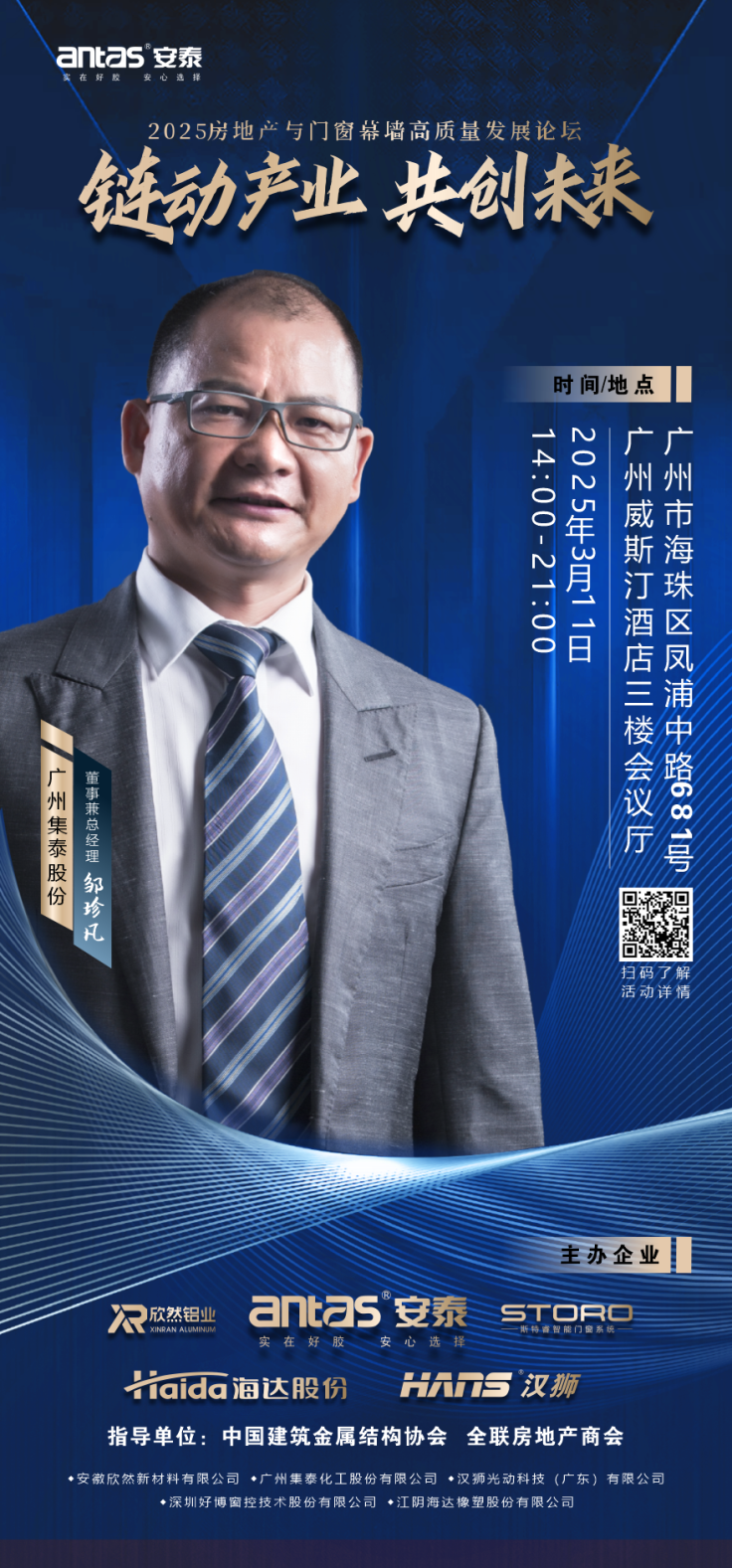 11日下午,“链动产业 共创未来”2025房地产与门窗幕墙高质量发展论坛将隆重举行,旨在汇聚产业链上下游企业精英,在交流与碰撞中,携手开拓更广阔的市场空间。