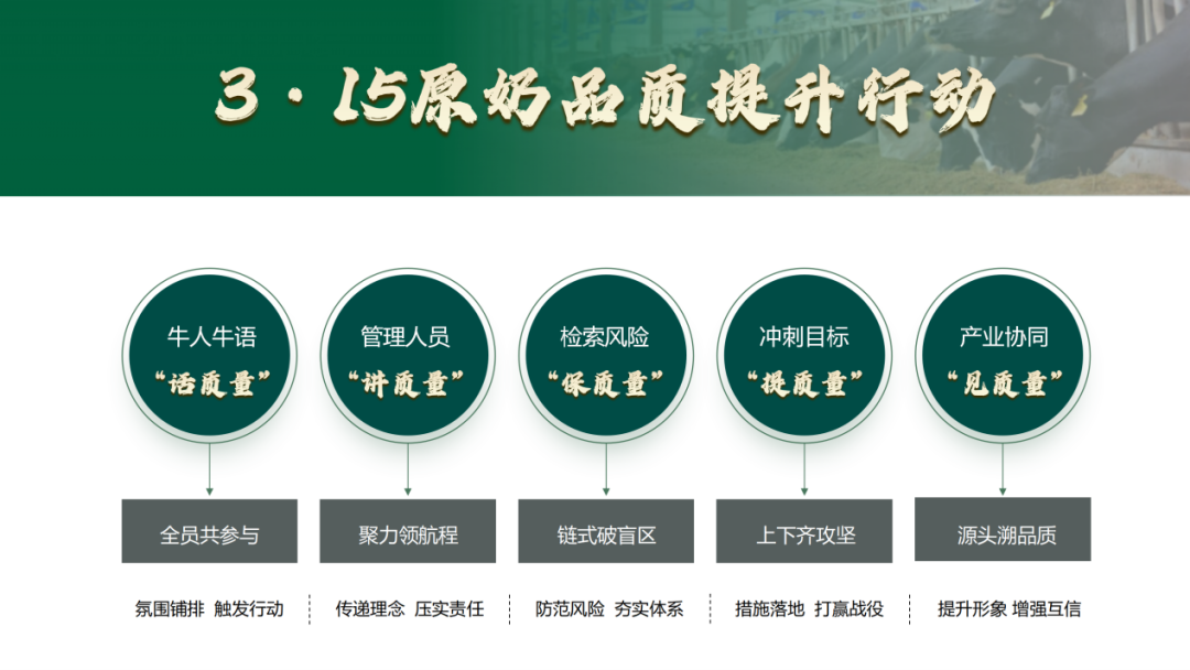 为贯彻落实集团“质引前行,效赢未来”战略,以实际行动践行“中国牛奶 世界品质 让消费者看见”的质量理念,推动集团质量管理水平再上新台阶,在3·15国际消费者权益日到来之际,现代牧业开展牧业特色“质引前行,守护每一滴好奶,共筑满意消费新未来”的主题系列活动。