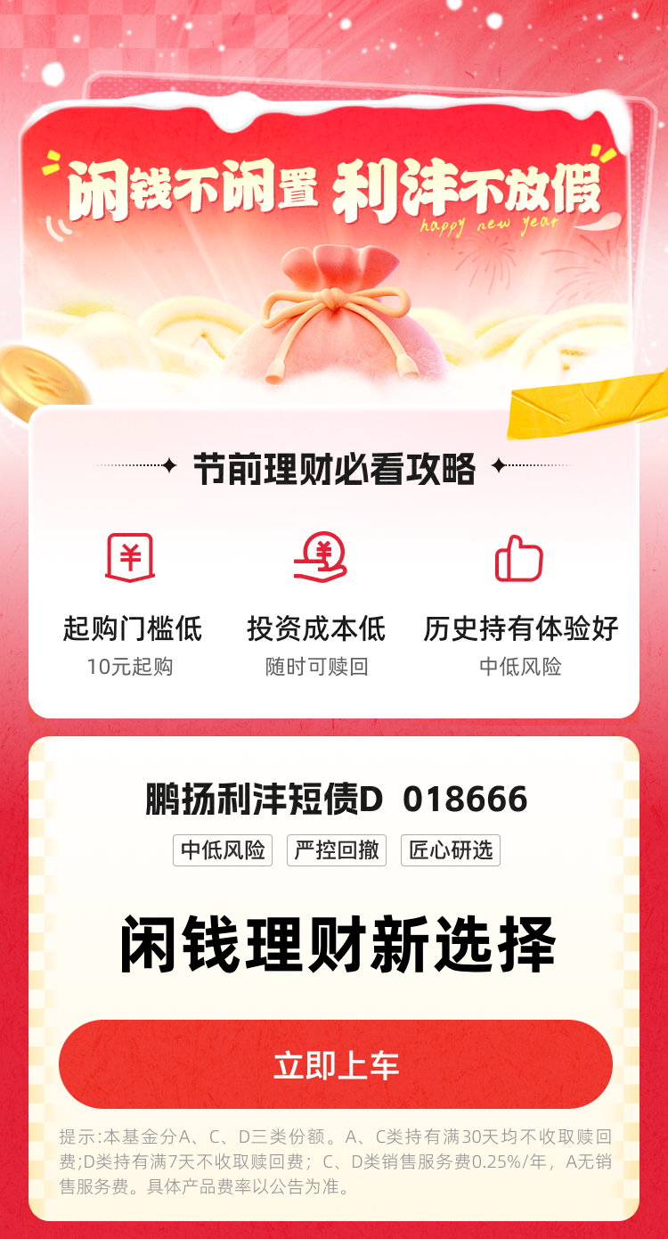 小提示:红包活动在开奖时间到达后自动开奖,并从所有参与人中抽取中奖者。中奖率 = 奖品总份数/参与总人数。并非人人有奖哦,点击“在看”和“点赞”,中奖概率更高哦!本活动最终解释权归鹏扬基金所有。