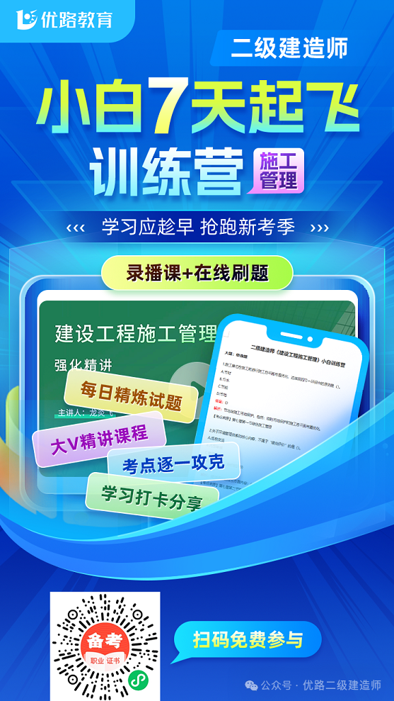 为助力备考,二建【小白7天起飞训练营】震撼上线!