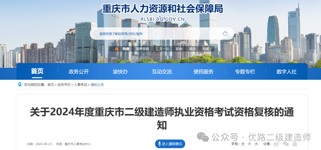 资格复核人员在规定的时间内登录重庆市人力资源和社会保障局网站(http://rlsbj.cq.gov.cn)-“人事考试网上报名”-“重庆市资格考试入口”进入复核系统,核对相关信息后上传复核材料。