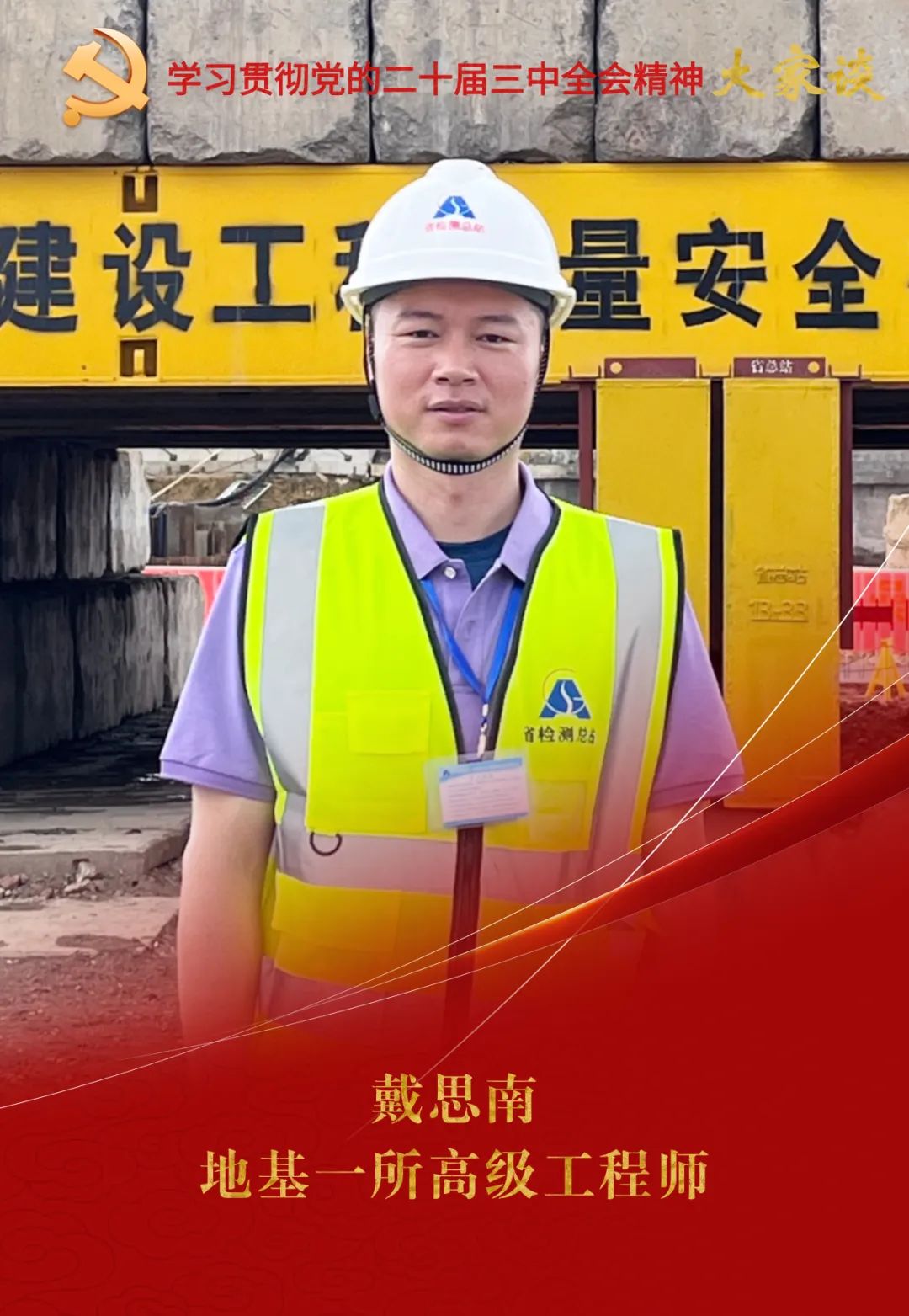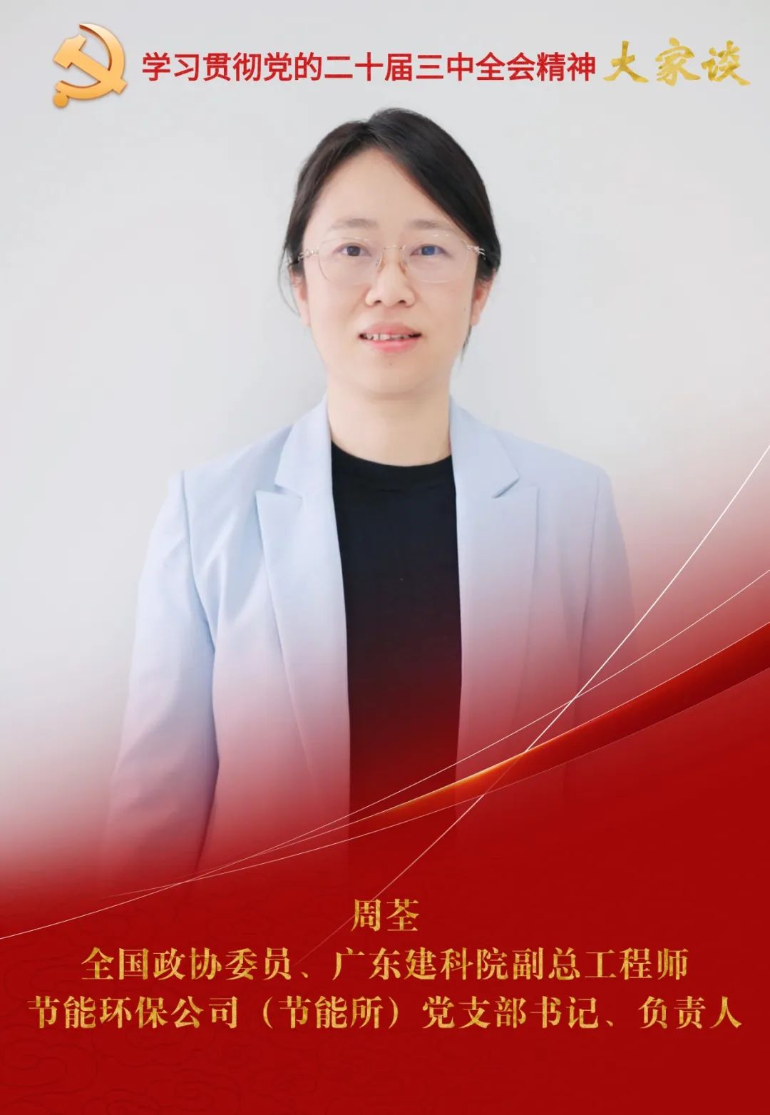 党的二十届三中全会审议通过的《中共中央关于进一步全面深化改革、推进中国式现代化的决定》,系统擘画了进一步全面深化改革、推进中国式现代化的宏伟蓝图,是指导新征程上进一步全面深化改革的纲领性文件。为深入学习贯彻全会精神,“广东建科院”现推出《学习贯彻党的二十届三中全会精神“大家谈”》专题报道,将邀请政协委员、劳模,院各部门、各单位负责人,博士、青年职工等群体,结合实际工作,畅谈学习体会,谋划落实举措,掀起学习贯彻党的二十届三中全会精神的热潮。