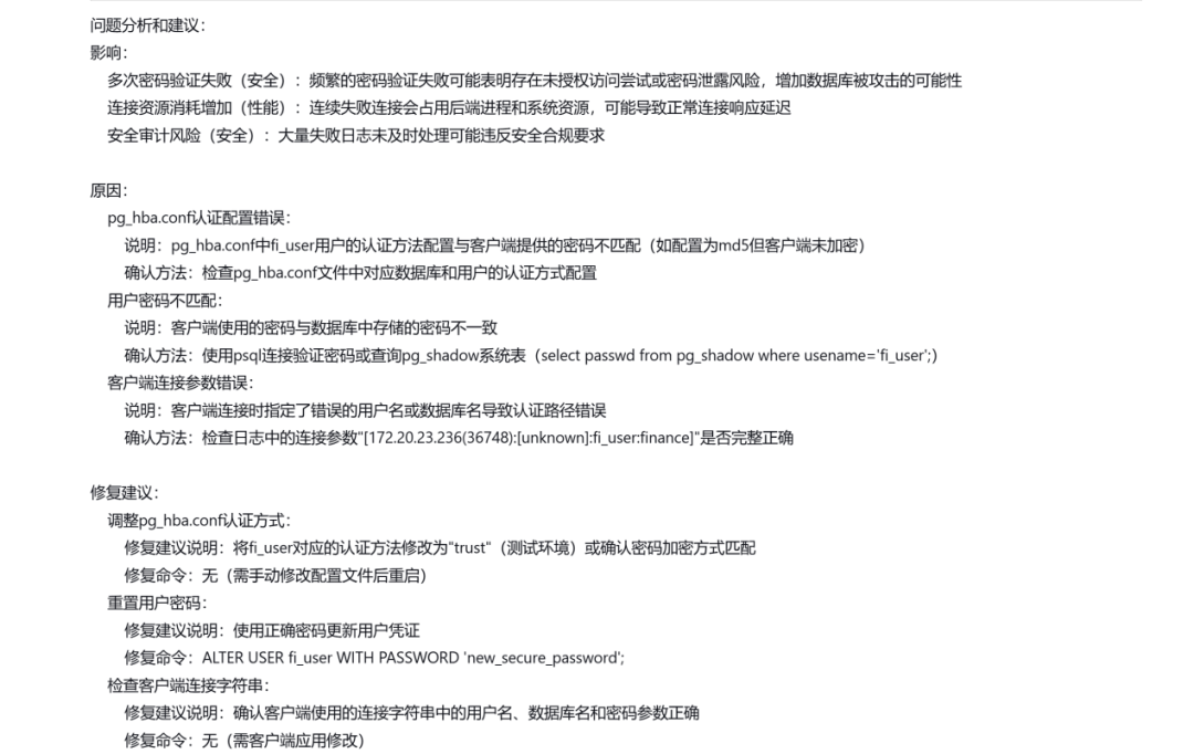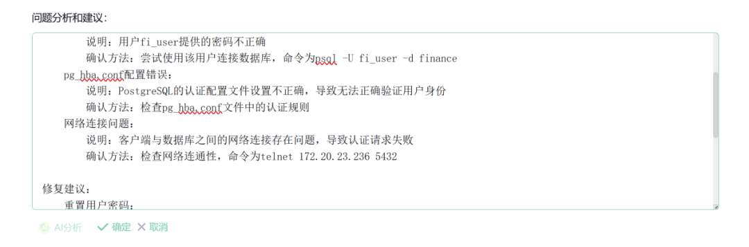 最新版本的多元数据库智能管理平台 zCloud 将集成 DeepSeek 大模型这件事想必大家都已经知道了。最近我在“疯狂”试用该新版本,不得不说,AI加持下的 zCloud 新特性让我这个算是比较资深的DBA眼里发光。DBA的日常工作里,数据库巡检报告的处理占据了我们不少时间和精力,而 zCloud 利用大模型对巡检报告进行智能分析的新特性可谓一缕福音,大幅提升了DBA对巡检报告的处理效率,解决了数据库运维领域的一大痛点。在细说 zCloud 的这一新特性之前,我想先和大家唠唠传统巡检报告的那些事儿。以往每次巡检结束后,系统会生成一份报告。报告里详细列出发现的问题,并会给出所谓的原因和修复建议。乍一看,似乎挺全面,可实际用起来就会困惑:“怎么都是‘千篇一律’的修复建议?”就拿“数据库日志发现严重错误”这个常见的巡检项问题来说,每次报告里的修复建议几乎都是“请通过错误日志排查问题”。但这个问题到底会产生什么影响?为什么会出现?具体又该如何解决?DBA真正关心的信息,报告里统统没有。就像下面这份日志截图,里面的确记录了一连串的错误信息,可它对我的帮助有限,无法提供有效的指引。每次拿到这样的报告后,我都很难直接依据报告解决问题,还得手动去分析具体原因,再凭借个人经验给出修复方案。要是只管理几套数据库,倒还勉强应付得来,可一旦面对几十套甚至几百套数据库,那工作量和压力瞬间“爆表”,不仅耗费大量时间,还特别容易出错,着实令人头疼。zCloud 这次带来的新特性,完全打破了传统巡检报告的局限,赋予了数据库巡检全新的体验。它借助大模型强大的语义处理和推理能力,针对每个巡检项的具体结果进行智能分析,不仅能精准找出问题的可能原因,还能给出明确的修复建议,甚至包含具体的检查方法和执行命令。还是以“数据库日志发现严重错误”为例,新特性会深入分析具体的错误日志,从影响、原因、修复建议三个维度进行详细说明(如下图所示),让我能够对这个问题形成全方位的认知。对于那些可直接通过命令操作解决的情况,zCloud 还会给出具体的操作方法,方便我直接进行验证或修复。让我们再通过一段操作录屏来直观体验一下该巡检项的AI分析。从截图和视频中我们可以清晰地看到,在问题“影响”部分,AI分析从稳定性、性能、高可用、安全等多个维度,对问题可能引发的风险进行了分类评估。这种全面的评估方式有助于DBA快速了解风险类别,为后续制定处理策略提供有益参考。比如,一旦发现性能方面存在风险,考虑到其可能对业务流畅性产生直接影响,我们通常会将其列为优先处理事项;而安全类风险,虽然也不容忽视,但在紧急程度上或许相对没那么高,可根据实际情况合理安排处理时间。再看“原因”和“修复建议”部分,其中有两点是我非常认可的:- 它给出的原因都是经过筛选、发生概率较高的。我推测是这个特性具备输出多个可能性最大原因的能力,以便让我们能快速锁定问题的关键所在,避免在一些低概率因素上浪费时间。