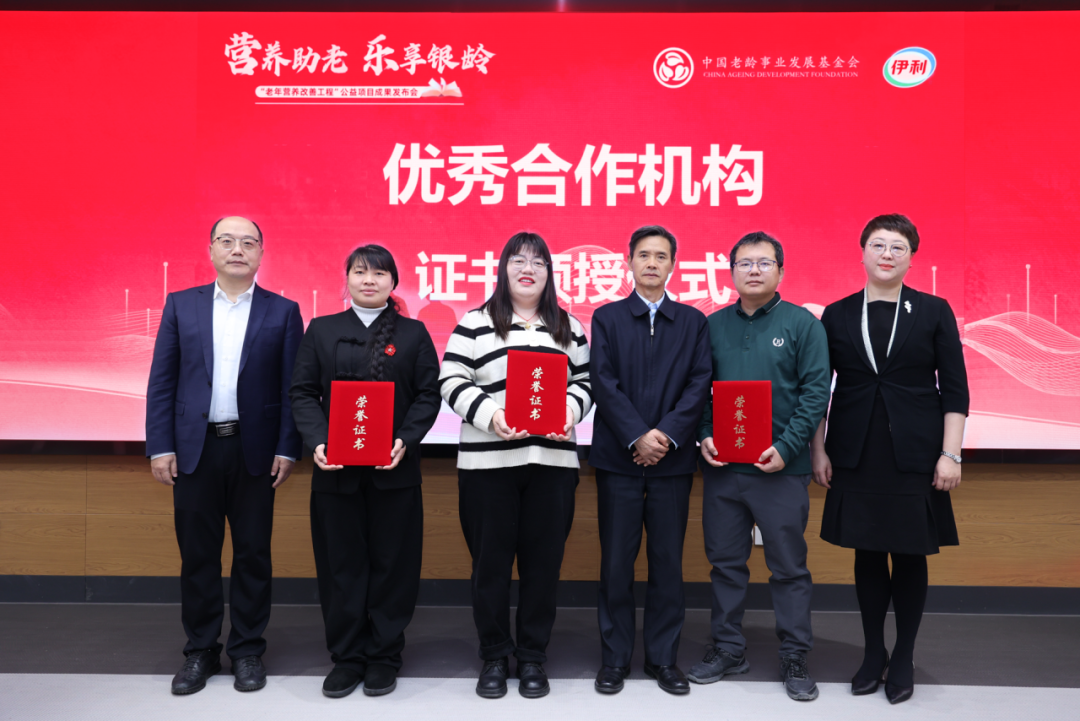 要为老年人构建一个更加健康、和谐的幸福生活,需要社会各界携手合作。发布会上,还举行了“优秀合作机构证书颁授”仪式,表彰那些在“老年营养改善工程”公益项目中作出卓越贡献的合作机构。这些荣誉不仅是对他们过往努力的认可,更是对未来携手共创老年友好社会的期待和承诺。