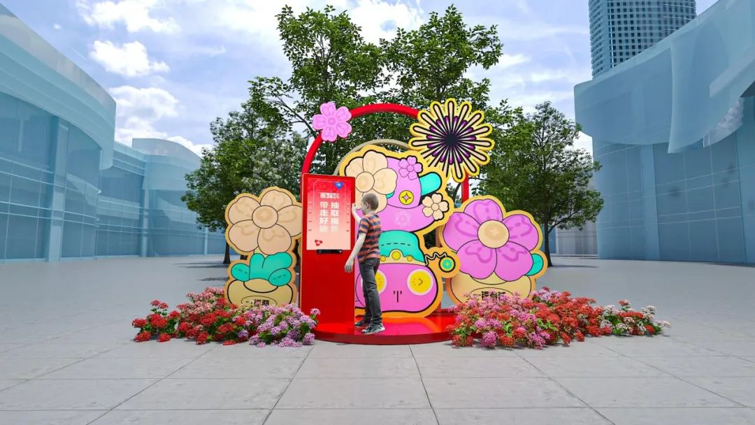 团队以“沉浸感”为关键词,通过科技环保材料塑造的节能减排的城市快闪场景,环保材料的选用(如可降解仿真花与模块化装置)不仅降低环境负担,更实现了“快速搭建-撤场”的无缝衔接。