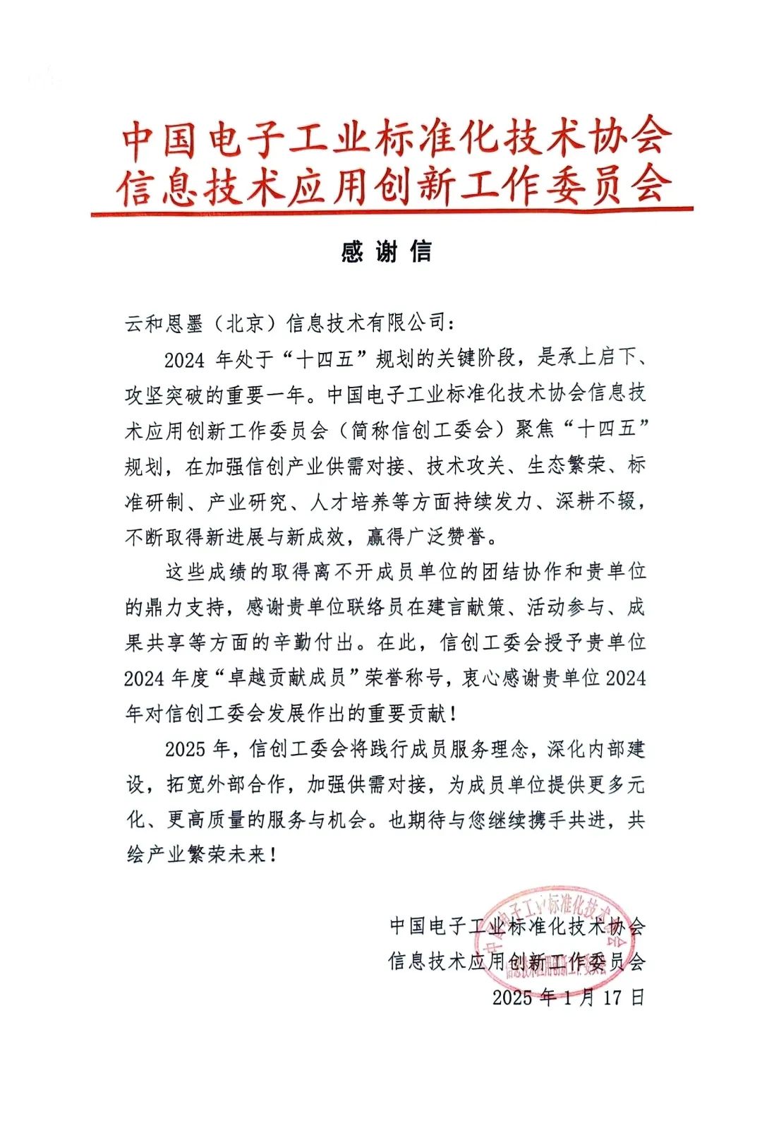 1月17日,中国电子工业标准化技术协会信息技术应用创新工作委员会(以下简称信创工委会)2024年度总结座谈会在京成功召开。本次大会旨在回顾总结2024年信创工作,并对2024年在信创工作中做出突出贡献的成员单位进行表彰。云和恩墨对信创工委会工作的鼎力支持和重要贡献得到了工委会的高度认可和感谢,因此荣获2024年度“卓越贡献成员单位”称号。云和恩墨自加入信创工委会以来,一直积极履行成员单位职责,凭借自身的技术优势和丰富经验,在标准的制定与推广工作中提出了多项建设性意见,助力信创产业发展。在信息传播与知识积累方面,云和恩墨旗下的墨天轮社区每月撰写并向成员单位发布《数据库产业大事记》,其详细记录了国产数据库行业的重要事件,包括新技术发布、企业动态、政策变化等内容,为行业从业者提供了系统的信息参考,帮助大家及时了解行业最新动态,为企业战略决策、技术研发方向的确定提供了有力依据。在推动行业知识交流与技术提升方面,云和恩墨作为信创工委会WG2数据库组企业能力建设组组长,组织了标准解读和顶会论文解读等多场专家分享活动。邀请权威专家深入剖析信创相关标准和前沿科技成果,将学术成果转化为行业可应用的知识,帮助企业理解标准要求,推动新标准、新技术在信创产业中的应用。此次荣获“卓越贡献成员单位”嘉奖,不仅是对云和恩墨在信创领域所做贡献的高度认可,更是对其坚持走自主创新、安全可控的国产化路线的有力鼓励。展望2025年,云和恩墨将携手产业伙伴,在信息技术应用创新领域持续发力,以标准化助力产业实现自主可控,共同推动我国信息安全事业与数字经济的高质量发展。