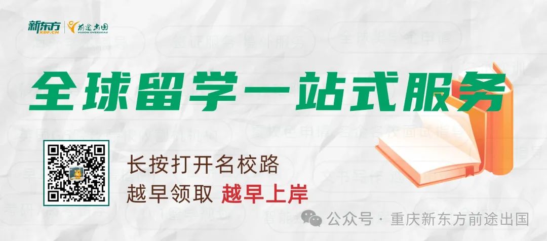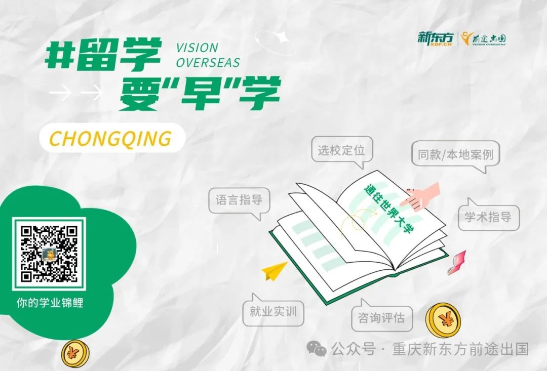 25fall留学人,选择重庆新东方前途出国,大数据申请规划、个人背景提升,助力你名校申请脱颖而出!如果有任何关于留学的问题,都可扫下方二维码咨询学姐哟~