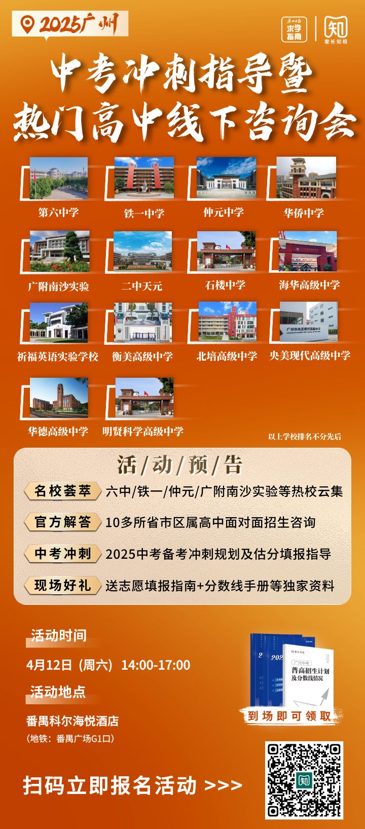 由广州日报求学指南工作室媒体支持的【广州中考热门学校咨询会】将于4月12日在番禺科尔海悦酒店举办。