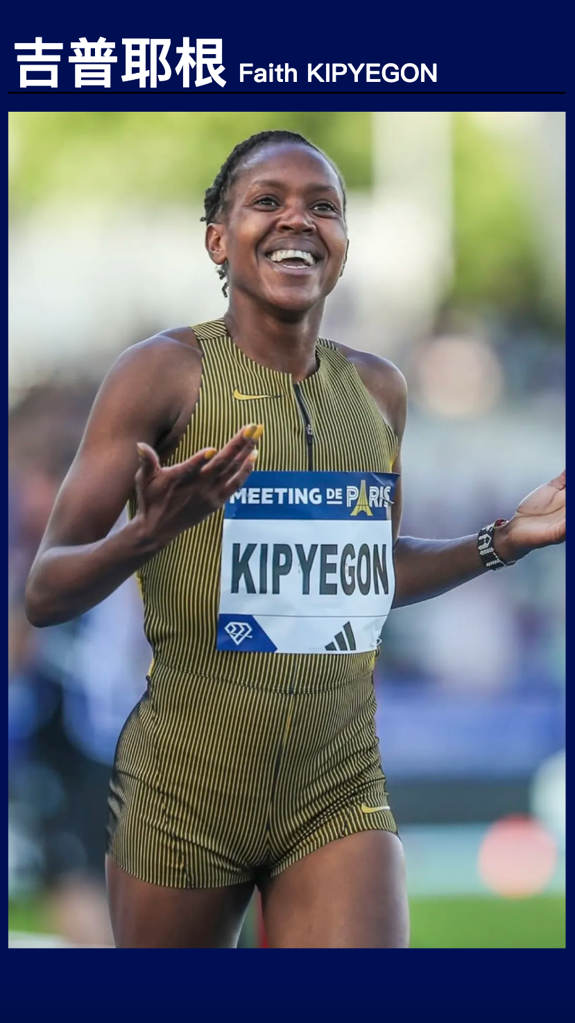肯尼亚“妈妈飞人”吉普耶根,1994 年出生的她,49 天内三破世界纪录,是女子 1500 米项目的大满贯得主,里约、东京、巴黎奥运会 1500 米冠军,这次在厦门的 1000 米赛道上,她又会带来怎样的惊喜?