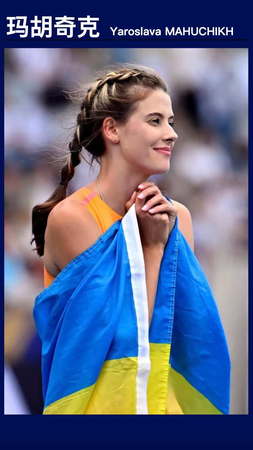乌克兰的跳高女王玛胡奇克,2001 年出生,2024 年打破女子跳高尘封 37 年的世界纪录,大满贯加身,颜值与实力并存,绝对是赛场上的焦点!
