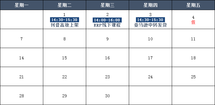 下周培训安排表
