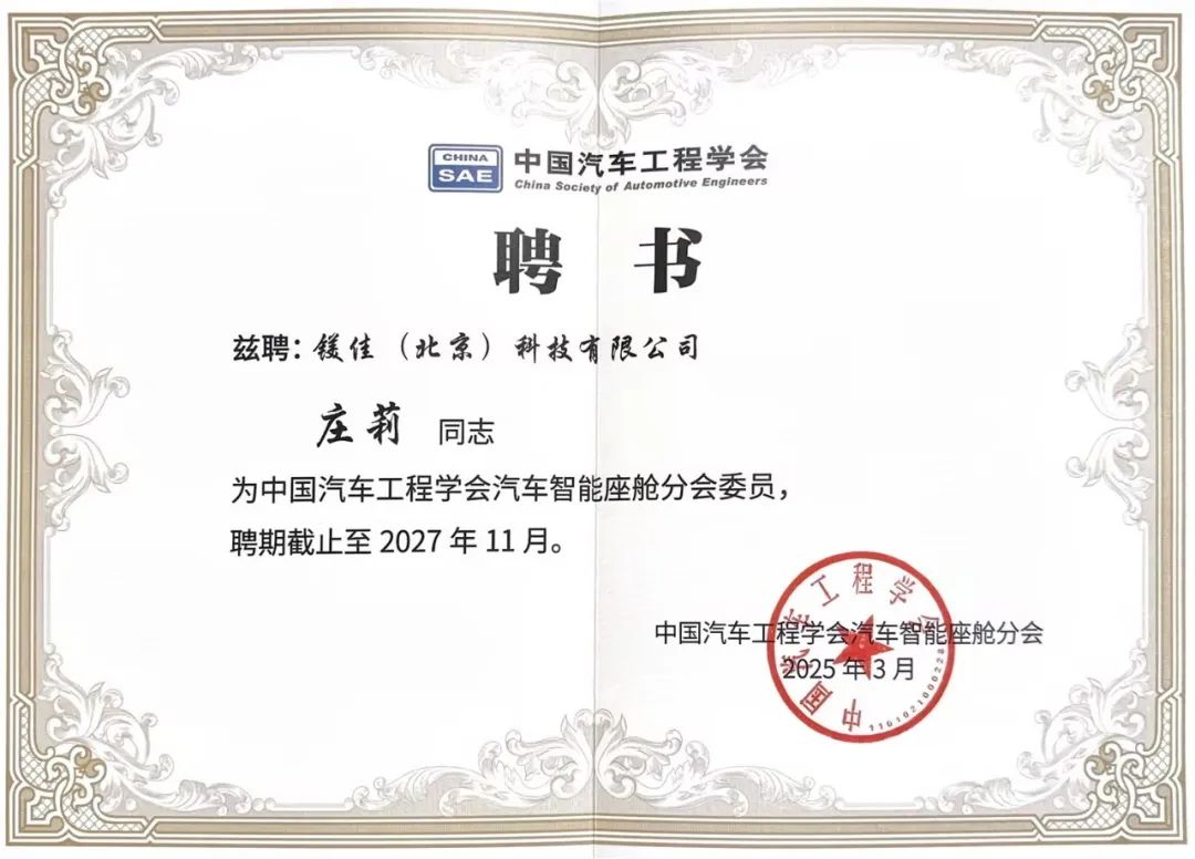 3月14日,中国汽车工程学会汽车智能座舱分会成立大会暨第一届一次工作会议在苏州高铁新城举行。镁佳科技创始人兼CEO庄莉在会上受聘为中国汽车工程学会汽车智能座舱分会委员。