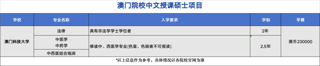 澳门有多所高校开设中文授课硕士项目向内地学生开放申请,其中热度较高的包括澳门大学、澳门科技大学和澳门城市大学等。