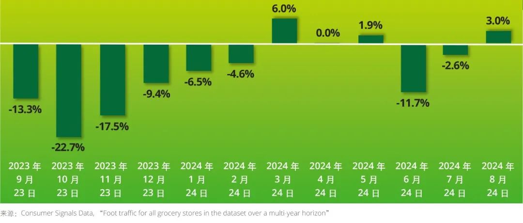 根据德勤全球消费者信号数据,2023年8月至2024年8月间,前10大食杂零售商客流量下降6.9%,而线上购物消费者数量虽减少4.91%,但其线上总支出反升4.45%,交易量亦增3.85%。此外,实体店销售额虽微降1.8%,仍占销售总额的90.26%,而到店自提与送货销售额分别大幅增长7.31%和34.24%,显示了购物模式向更加灵活的全域混合型转变的趋势。