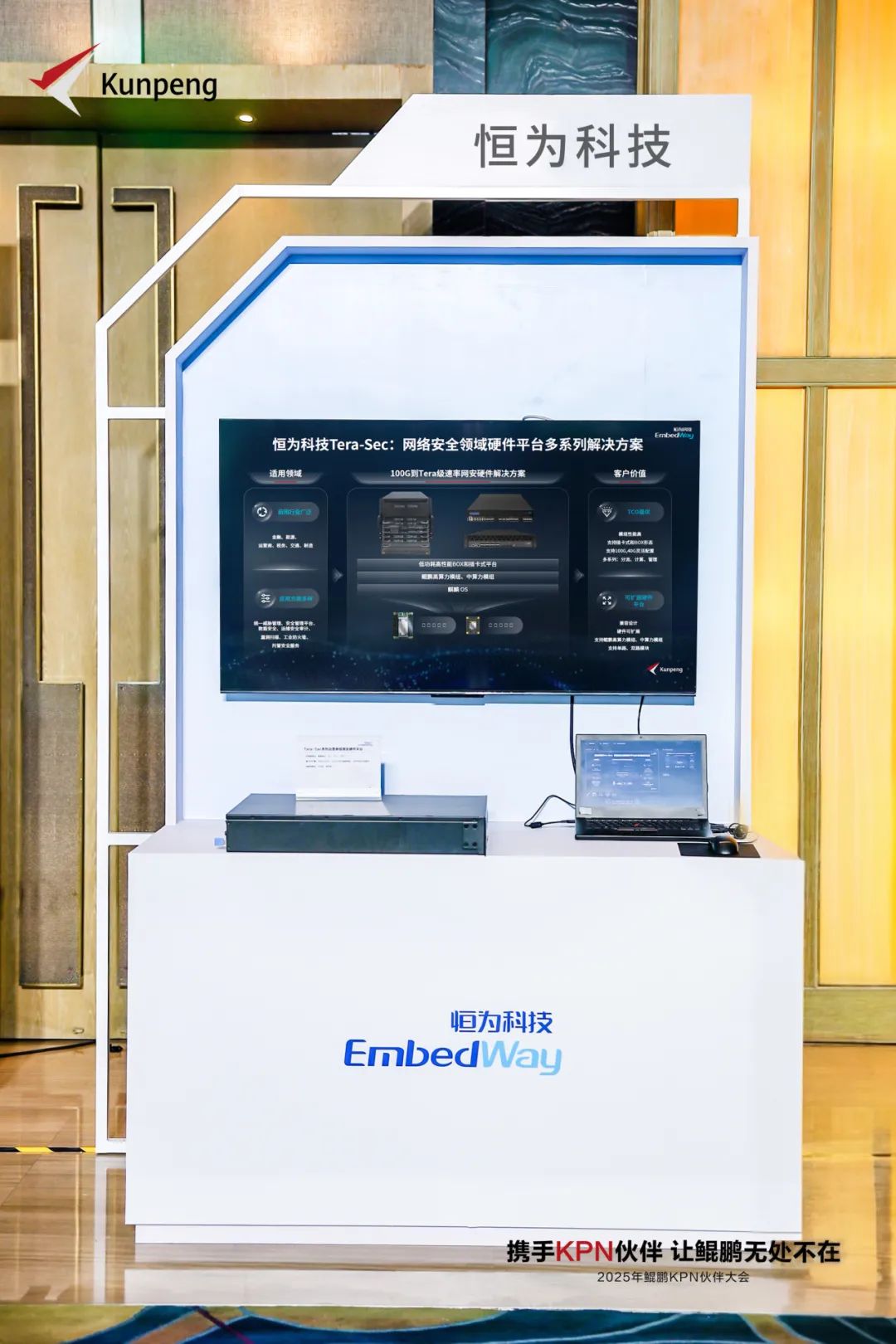 在“2025年鲲鹏KPN伙伴之夜颁奖典礼”上,恒为科技自主研发的鲲鹏 TeraSec 系列网络信息处理平台荣膺“KPN优秀产品奖”。TeraSec 网络信息处理平台提供高性能、高可靠性的网络数据处理解决方案,专为满足现代网络高带宽、低延迟的需求而设计。平台采用鲲鹏920模组,基于 CPU+NPU 异构计算架构,支持从 100G 到 Tera 级的网络流量处理,并兼容单路和双路配置,灵活适配多样化应用场景。通过智能调度与优化计算资源,结合 Dual-Dual Star 架构,确保网络连接的高可靠性与高吞吐量性能。另外,平台配备全面的硬件健康管理功能,实时监控系统状态,保障系统运行的稳定性与确定性。TeraSec 网络信息处理平台不仅是强大的网络信息处理工具,更是推动数字化转型、赋能智能未来的核心引擎。
