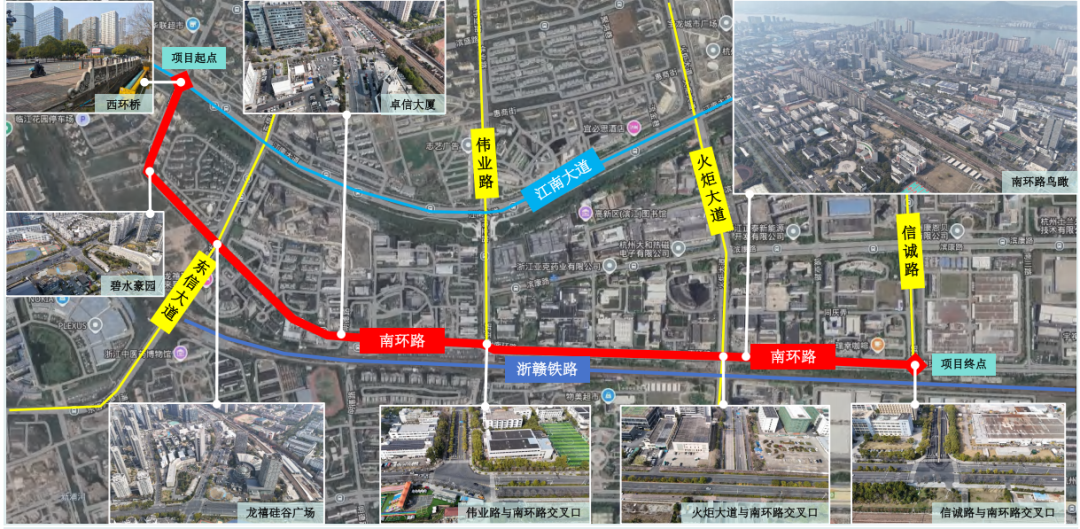 该项目位于浙江省杭州市滨江区南环路,西起江南大道,东至信诚路,主要涵盖两大工程,施工工期1440日历天: