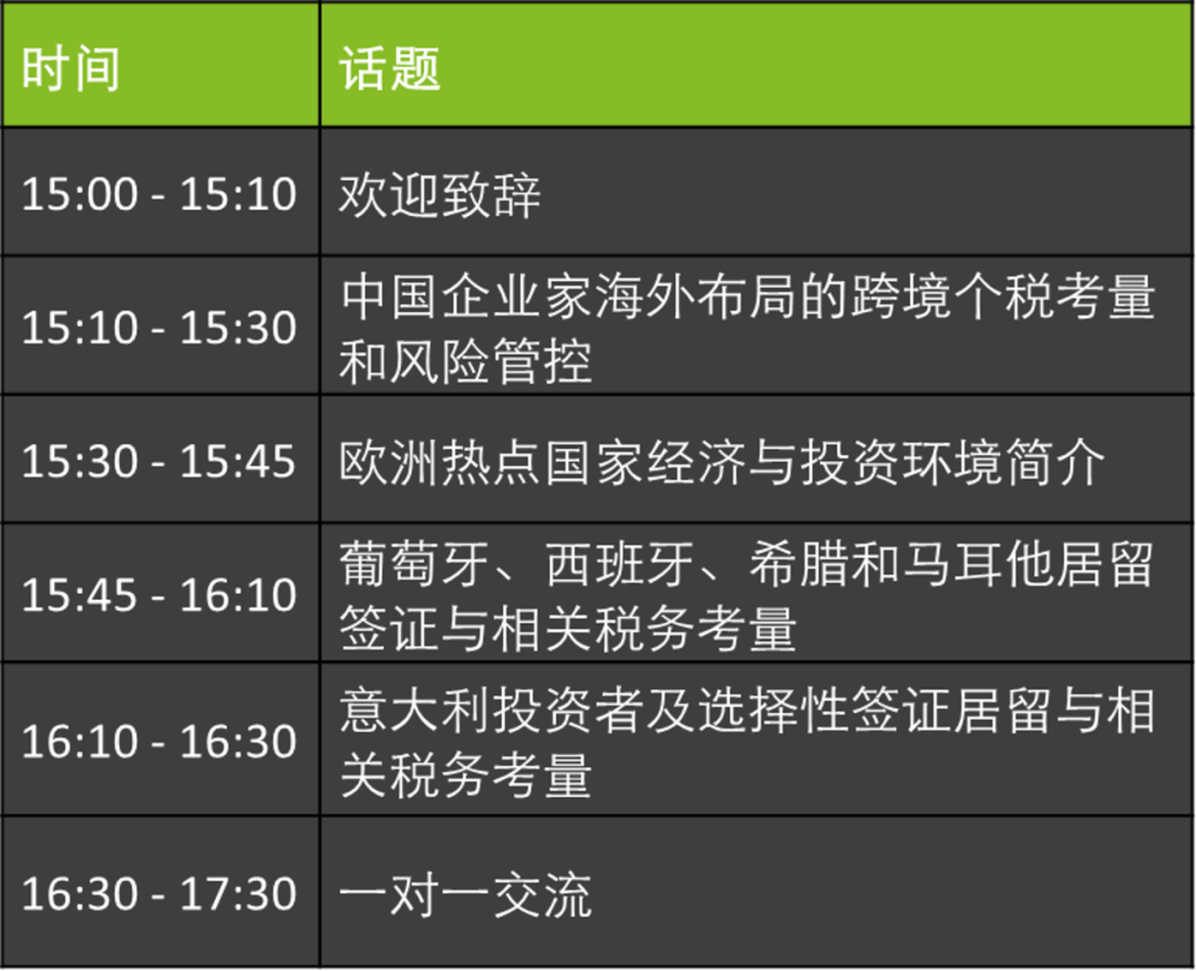 欧洲国家以其先进的技术、成熟的市场环境、稳定的法治体系以及丰富的文化底蕴,始终吸引着中国企业家的关注与投资。为此,我们诚挚邀请您参加欧洲投资圆桌研讨会。本次会议将由德勤欧洲及德勤中国私人客户服务专家团队共同主持,在探讨当前投资欧洲热点国家的经济与商业环境的同时,重点阐述当地的居留政策及相关税务考量。同时,专家团队将现场解答您的疑问,助力您在全球化布局中实现稳健发展。