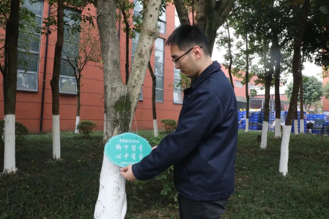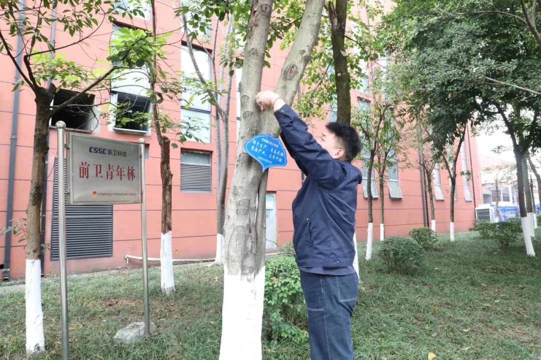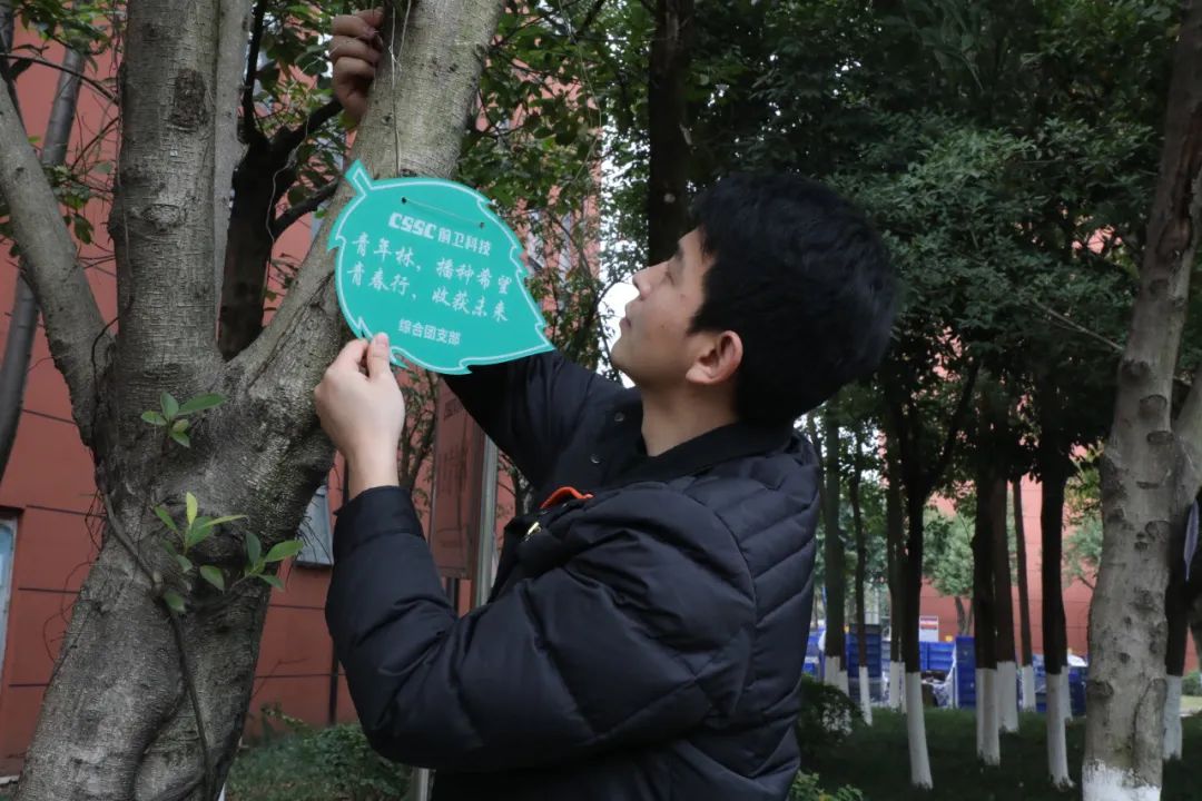 在一颗颗树木前,青年们轻轻挂上写满寄语的牌子,这些牌子不仅承载他们对树木成长的期待,也是自己对未来的期待。