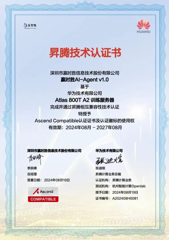为了达到“金融级”要求,昇腾不仅通过了WAT、CP、FT等测试精心挑选出满足高性能标准的AI处理器,而且根据“赢时胜AI-AGENT训练/推理一体机”所要求的金融级服务器测试标准,构建了满足认证级别的AI训练/推理功能的一体化专业服务器设备。每台“赢时胜AI-AGENT训练/推理一体机”在出厂前均需经历超过2000+基础服务器硬件测试和2000+昇腾硬件测试以及超过15000+操作系统及应用软件测试。测试还包括温湿度、高低温、随机振动、冲击扫频等复杂环境下的稳定性验证,以及可信操作系统、LLM训练和推理环境、AI-AGENT应用自检等软件层面的深度测试。这些措施确保了每台“赢时胜AI-AGENT训练/推理一体机”在抵达金融客户现场时,能够迅速且稳定地融入到金融级高可用环境中。