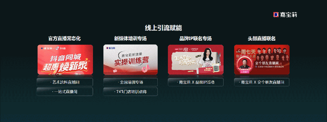 嘉宝莉「全域引擎」系统不仅是工具升级,更是商业逻辑的重构——通过数据共享与资源整合,实现“总部做基建,门店做精装”。2025年,系统将覆盖千家门店,目标推动经销商线上业绩占比突破行业新高,真正实现“全域无界,聚势而强”。