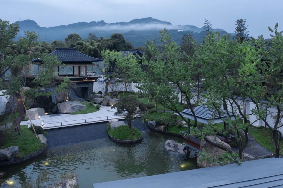 从民国时期穿越至宋代,重庆长乐雅颂再现宋代文化美学。园林打造借助宋代皇家园林艮岳中的巨石、花木、山水等元素,同时将王希孟的《千里江山图》,宋徽宗的《瑞鹤图》,刘松年的《四景山水图》,李唐的《万壑松风图》中的宋代园林打造方法及生活方式融入到项目中来,形成可观、可行、可游、可居的山水画境。