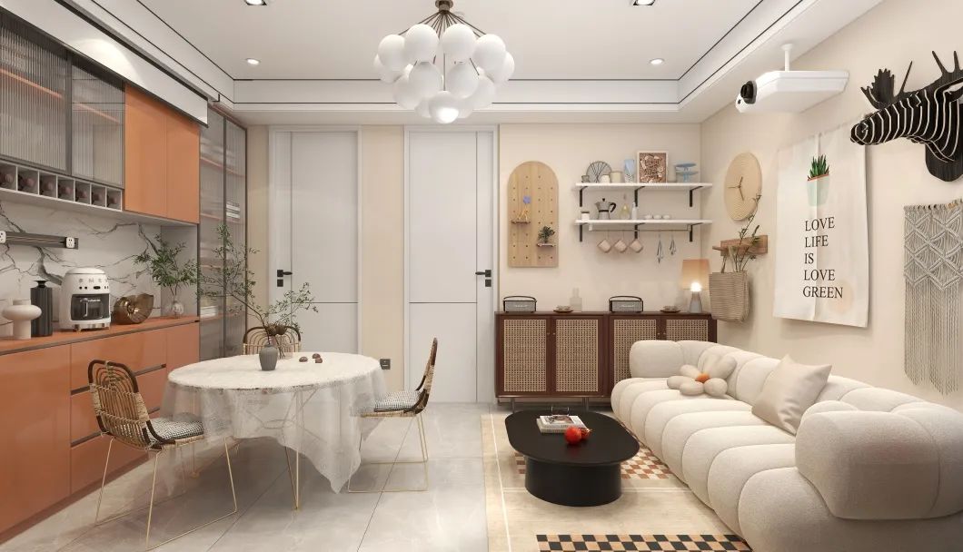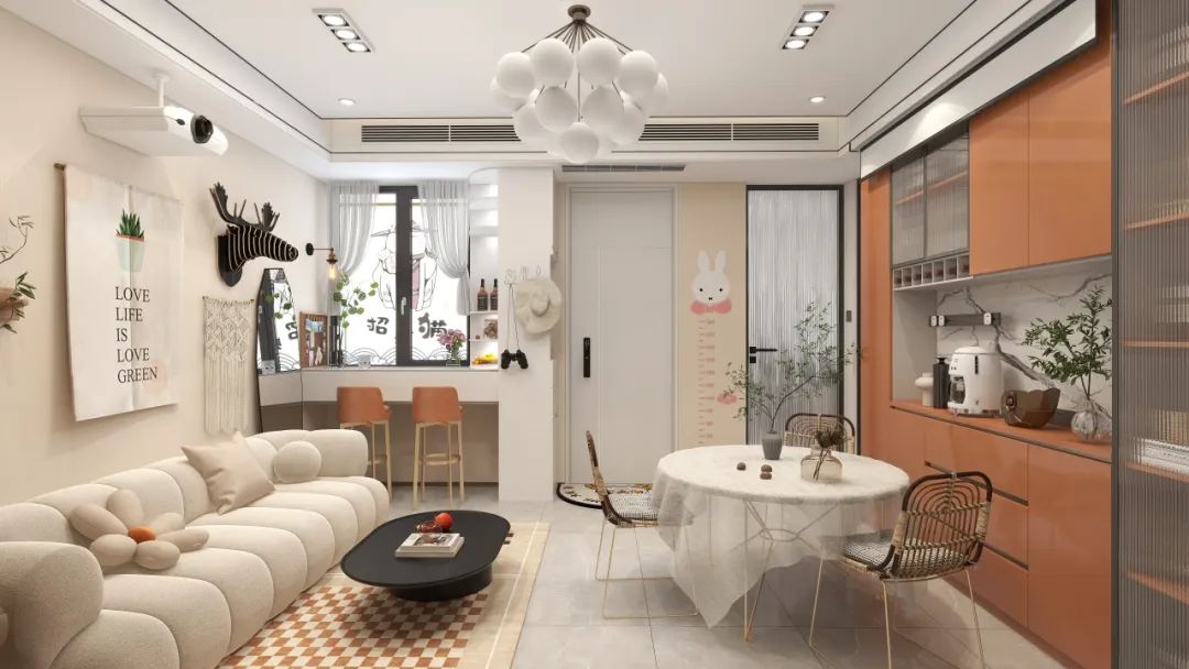 设计师以当下最流行的奶油风为基调,通过客餐厅一体+极致收纳方案,不仅解决了空间难题,更让老房焕发出新生机。