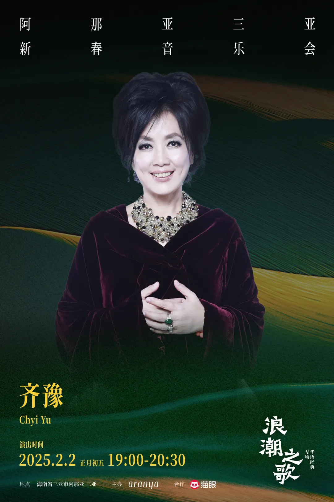 恰逢中国台湾民歌运动五十周年,阿那亚·三亚特别邀请了蔡琴、齐豫、胡德夫和潘越云等多位乐坛传奇人物,带来四场新春音乐会——“浪潮之歌”华语经典专场。