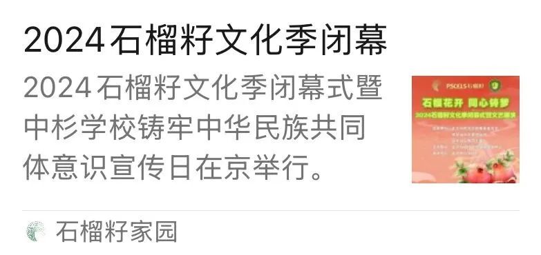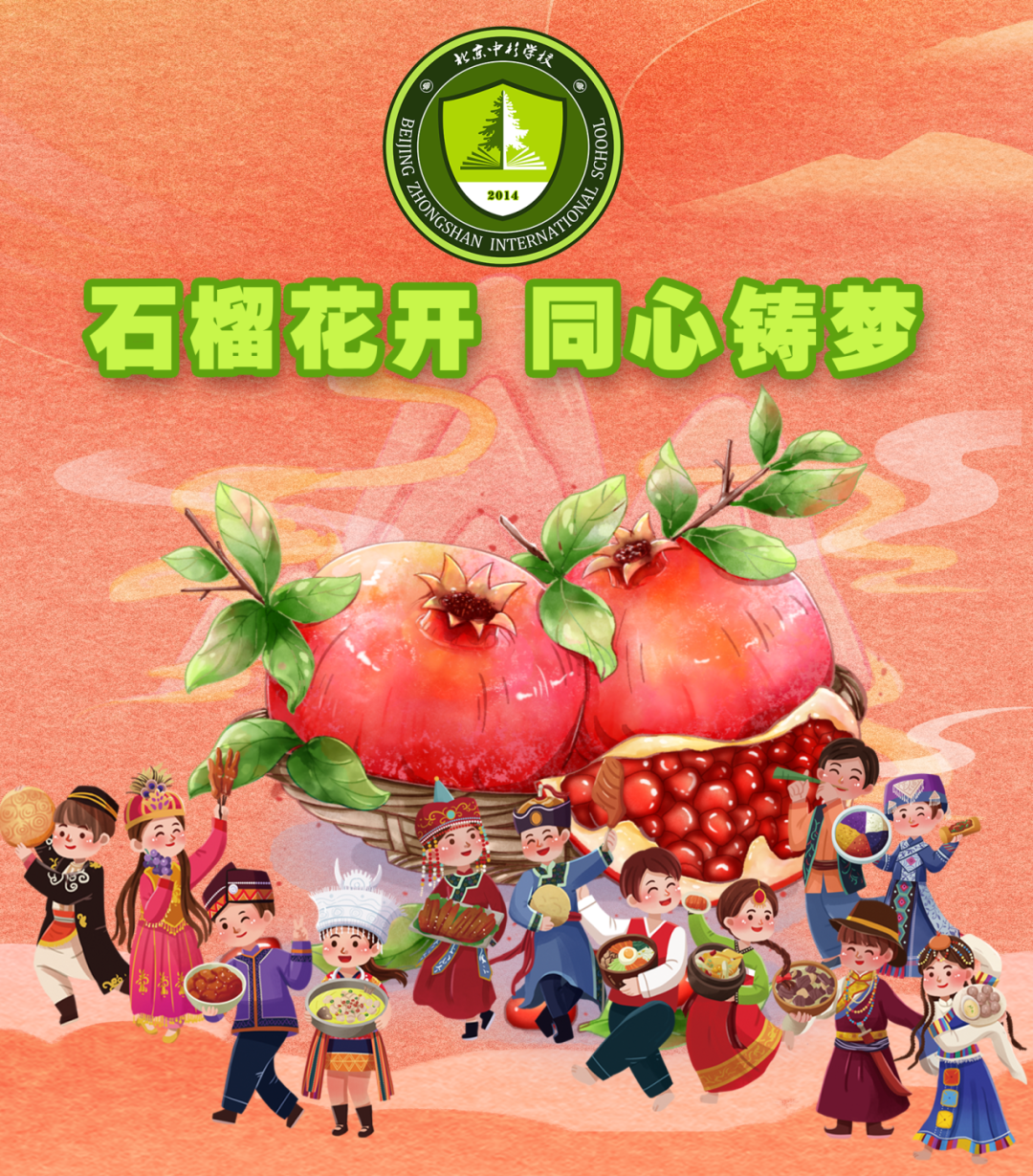 如果说班级、管乐团是一个个小石榴,那么56个民族则共同汇聚成了一棵丰收的石榴树。在“石榴籽”文化演出上,我们共同唱响了中华民族的团结之歌,那歌声又响亮又暖乎,满是对国家和各民族团结一心的歌颂和热爱。在中国这片广袤的土地上,各个民族相互尊重,如同石榴籽一般,相互包容、亲如兄弟姐妹。正是因为每个人都怀揣石榴籽精神,才让中华大地如此繁荣昌盛、和谐美好!