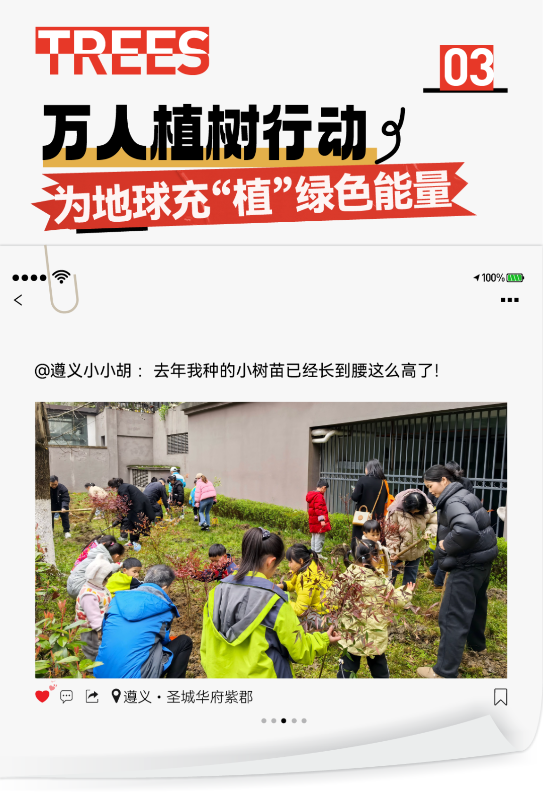 当超过10万棵树栽入湿润的泥土时,从重庆到武汉,到河北,再到杭州......第9个大志愿者日的小小志愿者们正踮脚为树苗系上心愿卡。