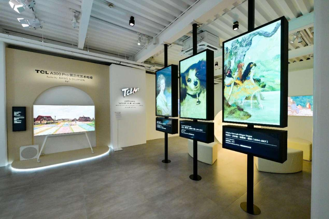 「TCL日光月影艺术馆」现场设有「日月光影」、「日月之境」、「艺术五感」三大展示区,以形、声、闻、味、触等多种方式,展现了古典与现代、东方与西方艺术的碰撞,带领观众沉浸式体验“未来自然灵感美学”。作为本次展览的一大亮点,包括莫奈、梵高的经典画作为首,近百幅19世纪到20世纪初期极富自然灵感美学的西方绘画作品,也均在艺术馆展出。