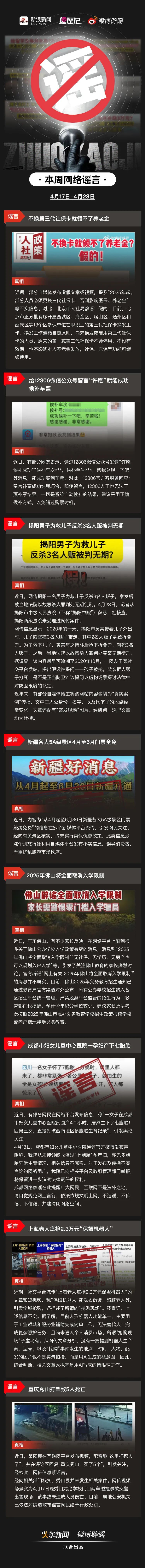 不换第三代社保卡就领不了养老金?给12306微信公众号留言“许愿”就能成功候补车票?揭阳男子为救儿子反杀3名人贩被判无期?@微博辟谣@捉谣记 联合发布本周谣言榜单。遏制谣言传播空间,净化网络生态环境。