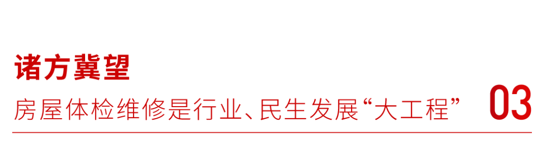 今年全国两会期间,全国政协委员洪杰建议,加快构建房屋体检和维修体系;进一步完善既有房屋体检和维修的技术标准,确保房屋安全管理的规范化和科学化,确保居民居住安全,助力城市更新与可持续发展,扩大内需,促进建筑业提质增效,推动产业转型升级。