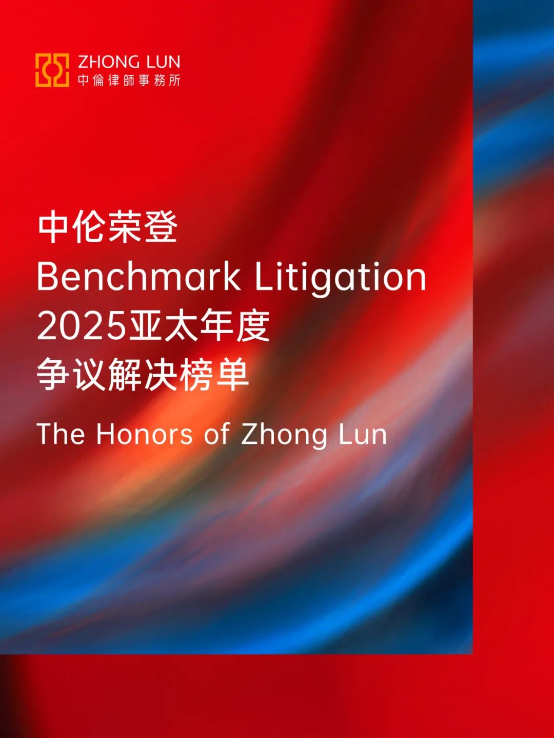 2025年5月7日,法律评级机构Benchmark Litigation发布“2025亚太年度争议解决榜单",中伦律师事务所载誉中国大陆地区榜单全部7个领域,在香港地区榜单3个领域获得推荐。其中,中伦在6个领域再度获得高度推荐/第一级别;20位合伙人/顾问荣膺“争议解决之星"及“未来之星"称号。
