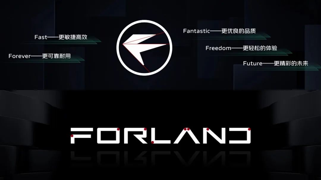 更加轻量、现代和时尚,传递科技感的“FORLAND”字母标