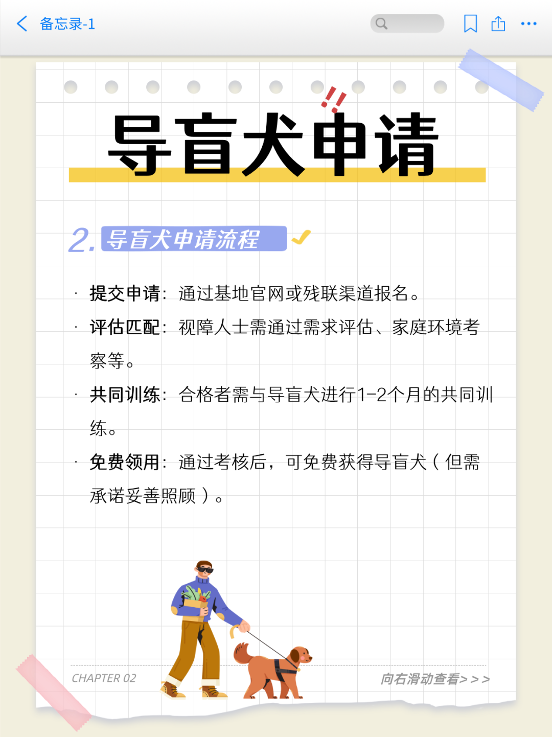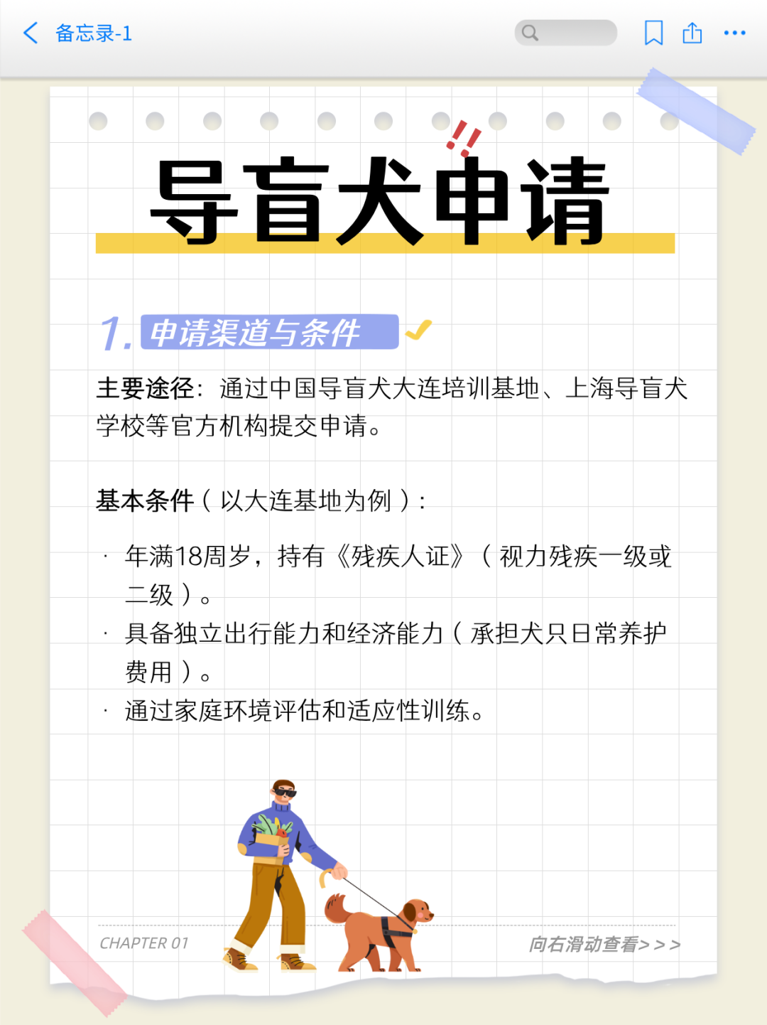 爸爸是一位非常出色的人,他热衷于探索新鲜事物,擅长写作、拍摄、剪辑,还会运营公众号和短视频平台。平时,爸爸妈妈喜欢用短视频记录我们出行的日常,希望借此让更多人关注导盲犬公益事业,支持导盲犬畅行。
