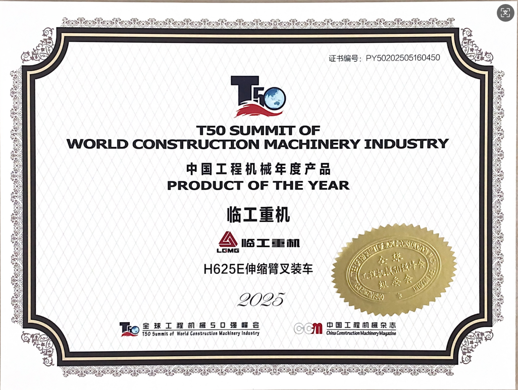 获奖的H625E伸缩臂叉装机以其出色的作业效率、稳定的操控性能和智能化功能,成为工程建设领域的明星产品。