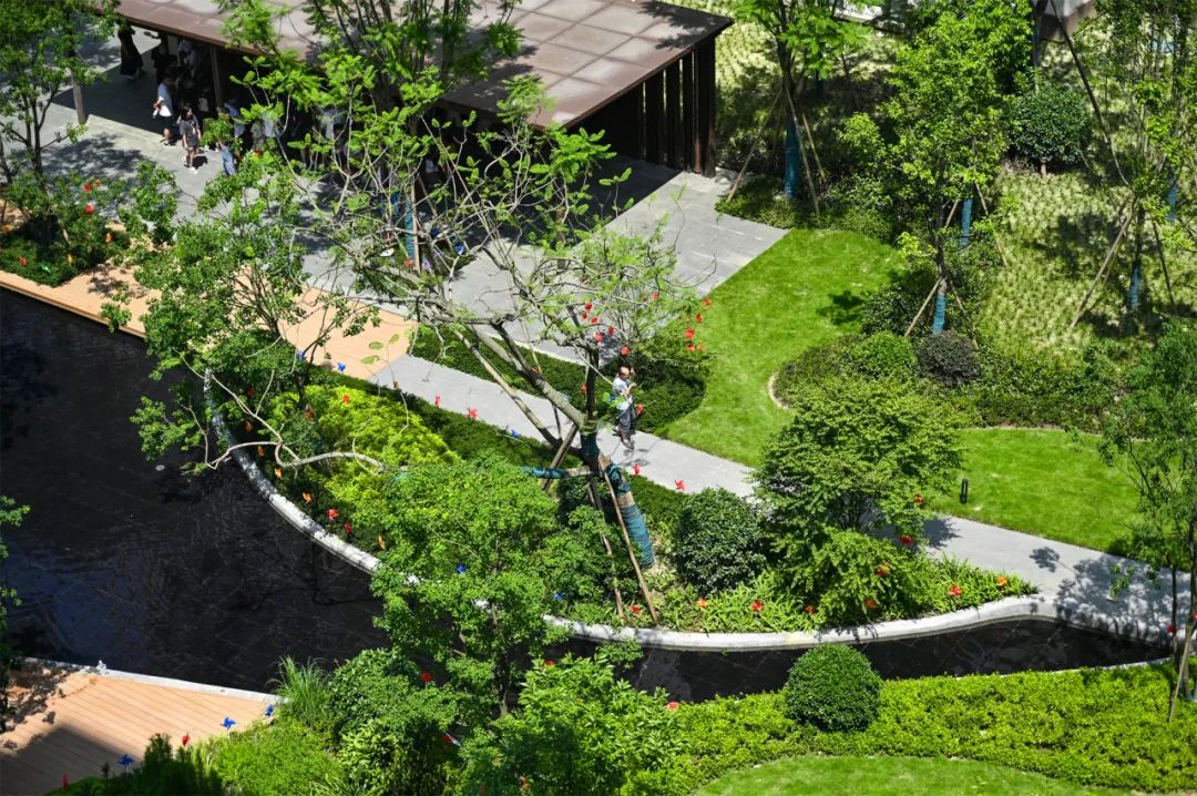 一条约600米深林运动环,串联整个社区,形成活力生活环;两大核心中庭,分别以林下共享庭院和儿童活动空间为中心,营造森居下绿意盎然的庭院生活;多个宅间休闲花园,以丰富的景观模块、富于层次的草木植株,演绎健康怡人的宜居体验……生活美学的建构,也在于依山悦丰富多元的空间场景设计之中。阳光草坪、林下客厅、休闲平台、景观廊架、植物认知园……互动感极强的功能性空间,形成了一个“自然”滤镜下的全生命周期生活新剧场。集生态、颜值、功能体验于一体,既是孩子撒欢“欢乐场”,也大人放松的“减压场”。交付,意味着对建筑品质的总结,对情感温度的传递,更是对匠心的美好呈现。