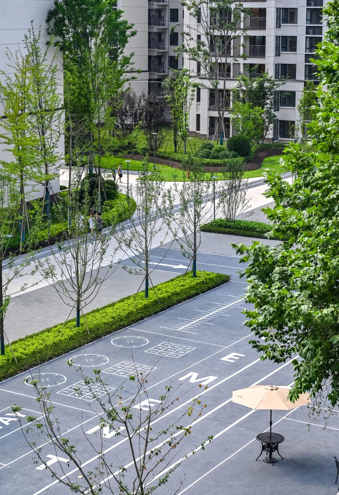 社区内部,“一环两庭多宅间”的景观,给业主提供人与自然和谐共处及日常活动与集散的生态空间。