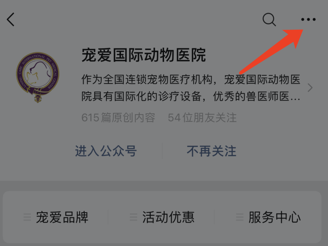 *点击右上角,将宠爱国际的公众号,