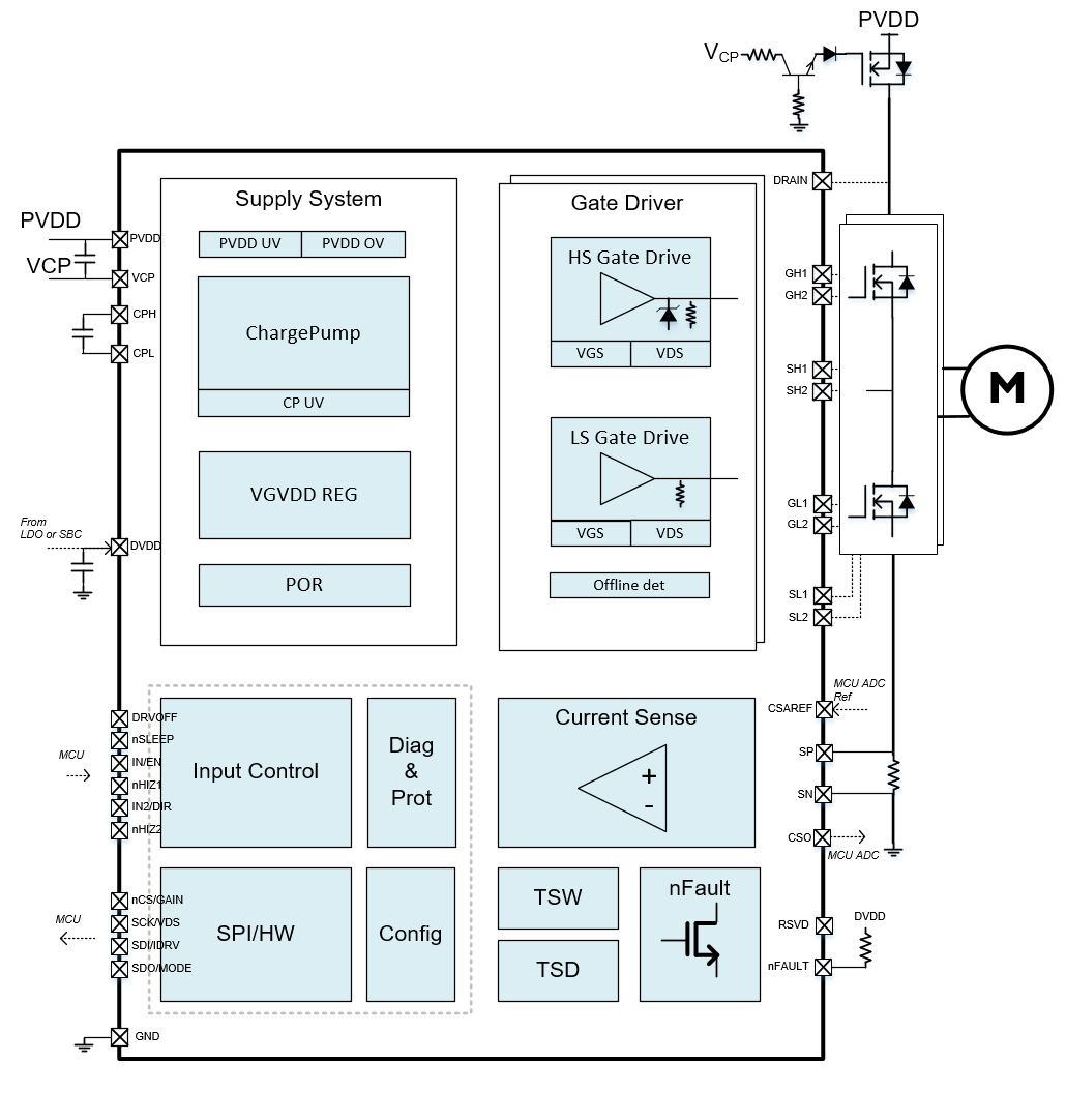 • 灵活的栅极驱动电流配置:支持最多16档调节(SPI版本)