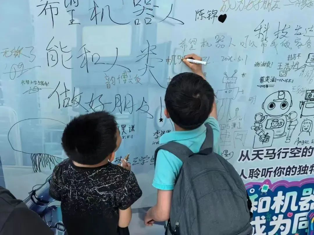 活动现场,小朋友们跟机器人握手、下棋、看它们踢足球、和它们比拼俯卧撑,引起一阵阵惊呼和叫好!孩子们眼里闪烁的光,仿佛照射出了未来那条更灿烂、更多彩的路。
