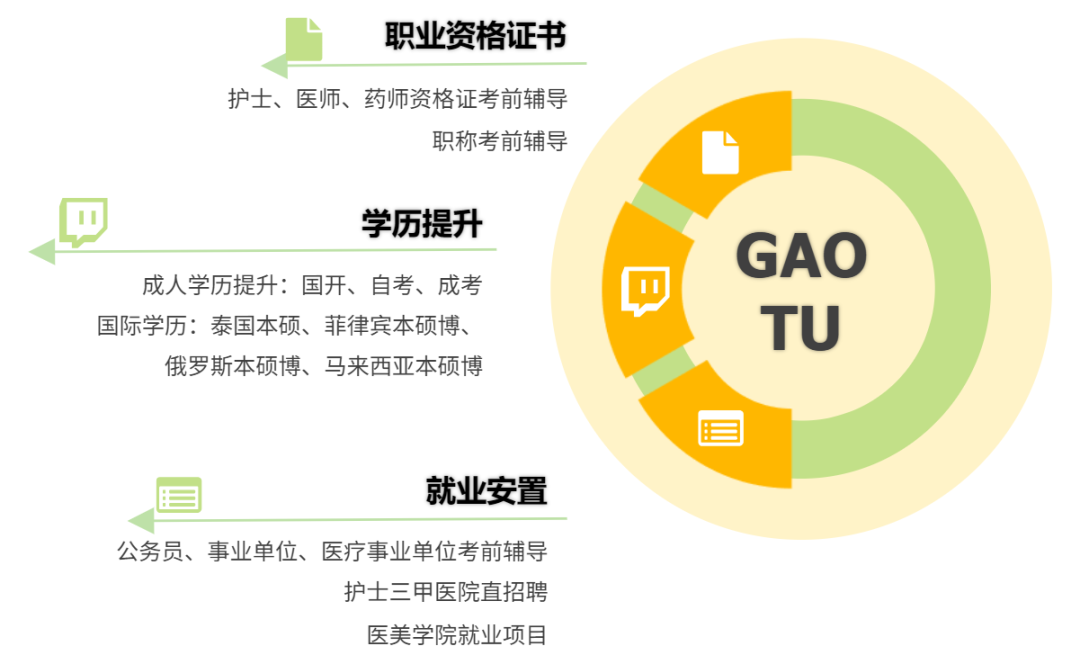 高途医考:高途医考课程秉持校企合作的产品逻辑,包含“取证-升学-就业”一体化全生命周期产品服务。精选优质师资,实施多维度监督,保障学员的考试通过率,并为学员的长远职业发展提供有力支持。