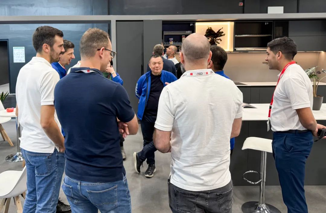 在库博展位驻足或者走进展位的宾客,库博团队立即启动全维响应模式,热情招待,邀请来访宾客触摸产品质感,参与抽拉体验,让宾客全方位领略中国精度,体验库博极致工艺与智序美学。库博团队灵敏地将潜在需求转化为长远的跟进计划。库博此次参展,接待了数十国买家,达成了多项战略合作意向。