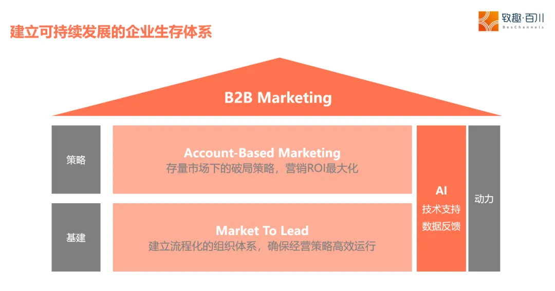 to Lead)营销体系意味着我们在推进营销策略时,要始终将客户置于市场策略的中心位置,强调根据客户的心理购买周期,构建起具有针对性的全流程营销方案。市场人需告别过去“自说自话”的营销方式,深入客户视角挖掘其需求与痛点。其次,要积极协同企业内部,建立品牌-战略-研发-销售-客户的全方位一体化营销经营体系,在确保营销活动有效推进的同时,能够实现为产研团队输入有效需求与洞察,保证产品与服务的高质量交付,进而实现整体业务目标的完成。同时,市场人需进一步将 MTL 流程化思维贯穿在整个营销活动中,搭建由点至面的流程体系。关注包括:市场部是否明确建立线索运营规则、通过市场部收集到的线索是否有高效及时地流转至销售侧、市场部是否针对自身 ROI 考核建立有效评估体系等多维度的流程规范。 三、建立可持续发展的企业生存体系爆点是一次性且不可持续的,热度也会随着时间逐渐褪去。ToB 营销由于受众不同,难以打造类似《黑神话:悟空》现象级爆款事件,因此,把握适合自身企业的营销逻辑与体系至关重要。在当前的环境中,我们不一定非要做大声量,在已有的用户池中进一步挖掘销售机会,小步慢跑的去外部渠道尝试拓新,让营销与客户之间的每个环节都能关联起来,逐渐形成一套可持续的营销闭环体系,才是企业求生存促发展的长久之计。