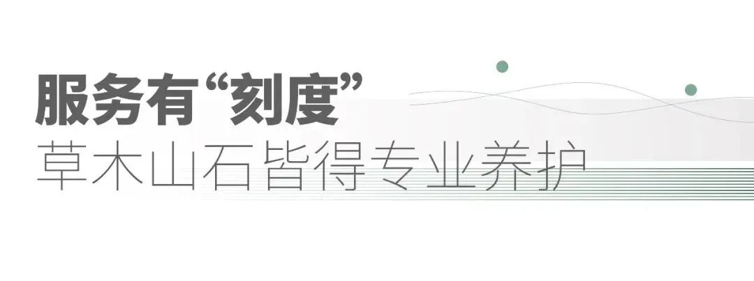 美景如初,源于日日精心“养”成。41栋楼外立面珍贵石材,由13名工程师傅精心照料,坚持采用原进口石材修缮;10万多平米园林由21名绿化人员细心打理,每年3月草坪打孔后,每周进行覆沙、播籽,并按树种每周一次精准施药、按需输液。物业还可根据业主对私家园林的需求,在指定区域补种指定花草树木。