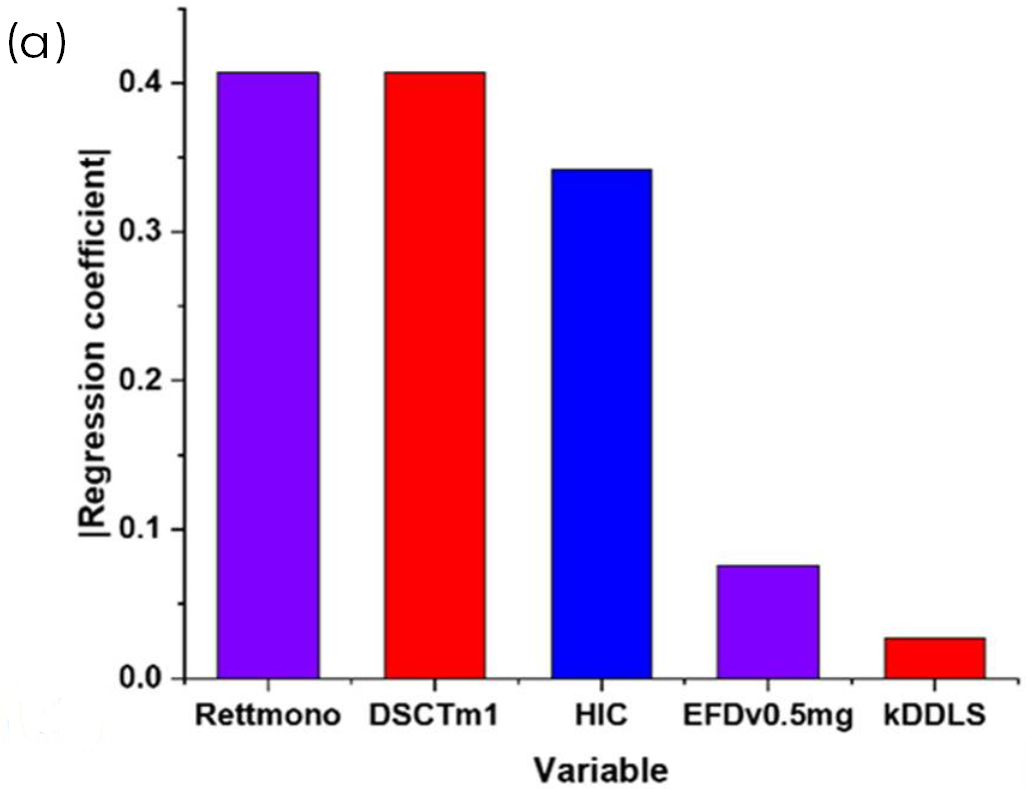 近年来,随着计算机及AI技术的飞速发展,可开发性评估的这种能力,变得更具可操作性。最近发表于《Mol Pharm》的研究就对9种单抗-处方组合的样品,测定了12种不同机制的成药性参数,并进行加速和长期储存稳定性实验。然后,基于层次聚类构建4大家族参数群,使用LASSO回归筛选出5个关键生物物理特征属性并汇总成一个综合可开发性参数(Holistic Developability Parameter,HDP),将6个月长期稳定性验证周期压缩至1天,从而显著降低成本并加速开发。