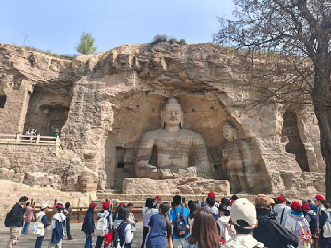 云冈石窟的大佛庄严肃穆,佛龛上的飞天雕刻栩栩如生,千年的凿刻痕迹里,藏着古人的虔诚与智慧。悬空寺宛如空中楼阁,“奇、巧、险” 令人称绝,龙娃们小心翼翼地攀爬木质楼梯,感受建筑奇迹的震撼。大同古城的城墙巍峨耸立,博物馆里的青铜器、陶瓷器诉说着北魏的辉煌。高速飞车科技馆内,磁悬浮列车模型飞速掠过,未来交通的图景,点燃了龙娃们对科技的向往。