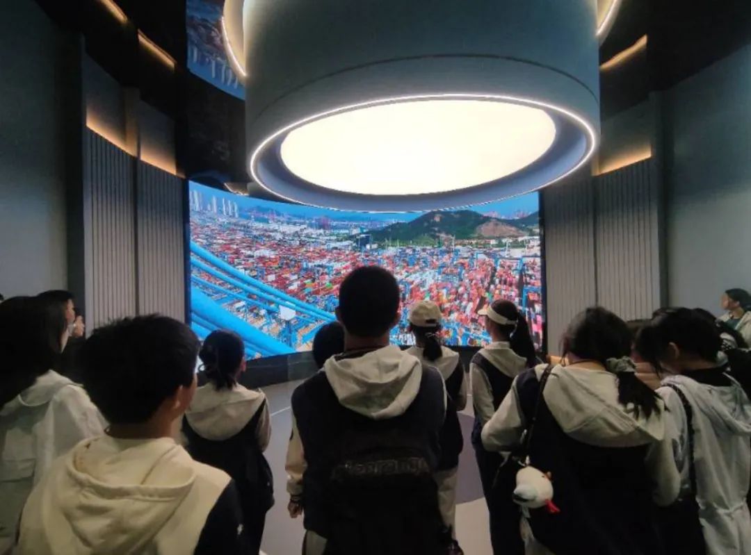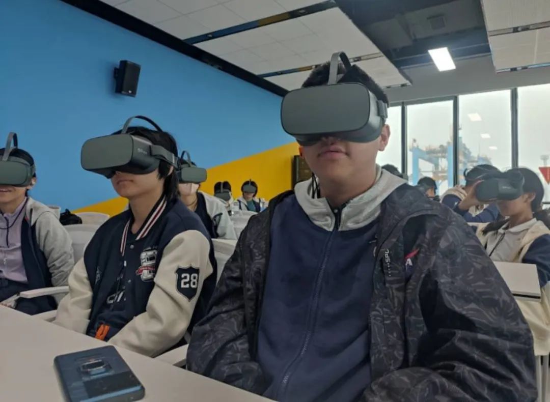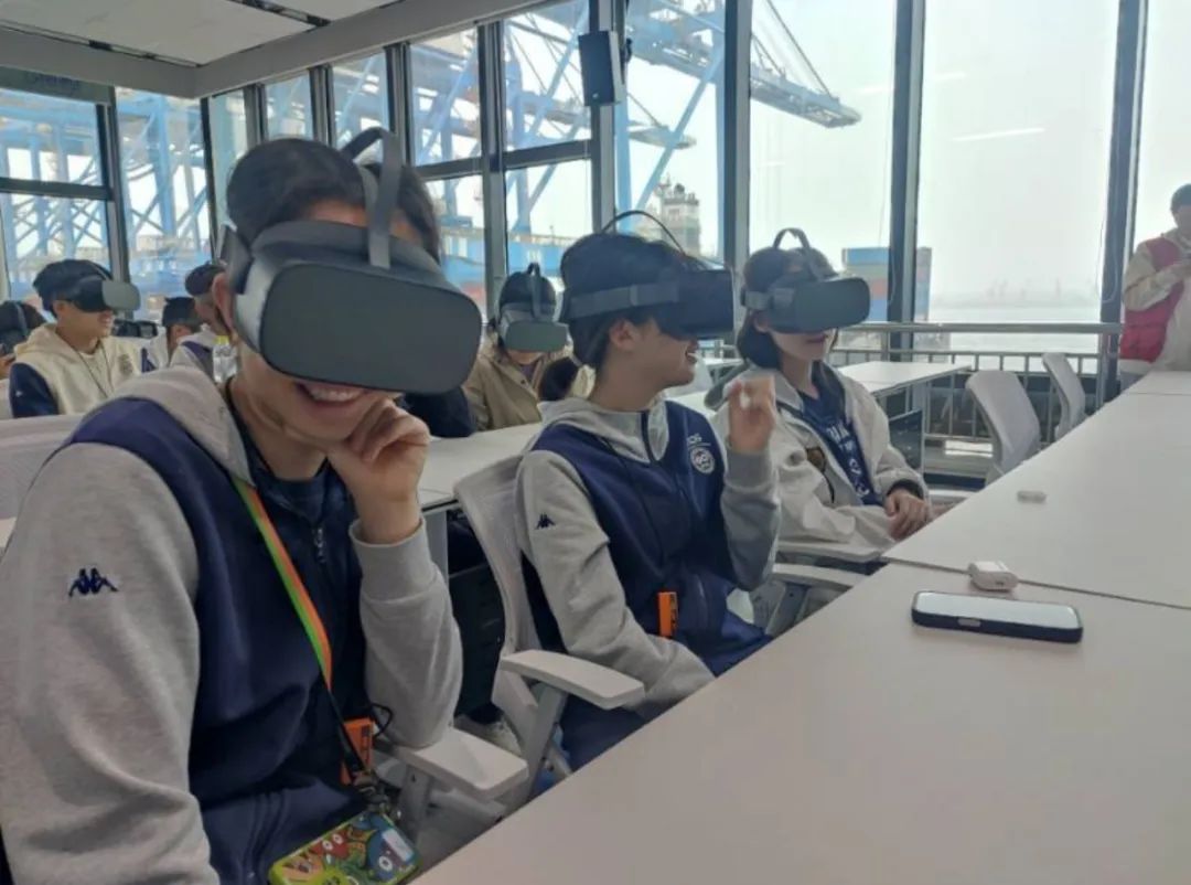 在山东港口自动化研学基地,震撼的场景让龙娃们大开眼界。岸边,巨大的自动化桥吊精准地抓取集装箱,无人驾驶的集卡沿着磁钉轨道有序穿梭,整个港口仿佛是一座精密运转的 “钢铁森林”。龙娃们通过VR,体验了一回“港口指挥官”的工作,了解到自动化系统如何高效调度,深刻感受到科技对现代物流的巨大变革。