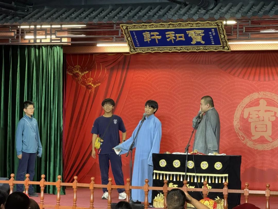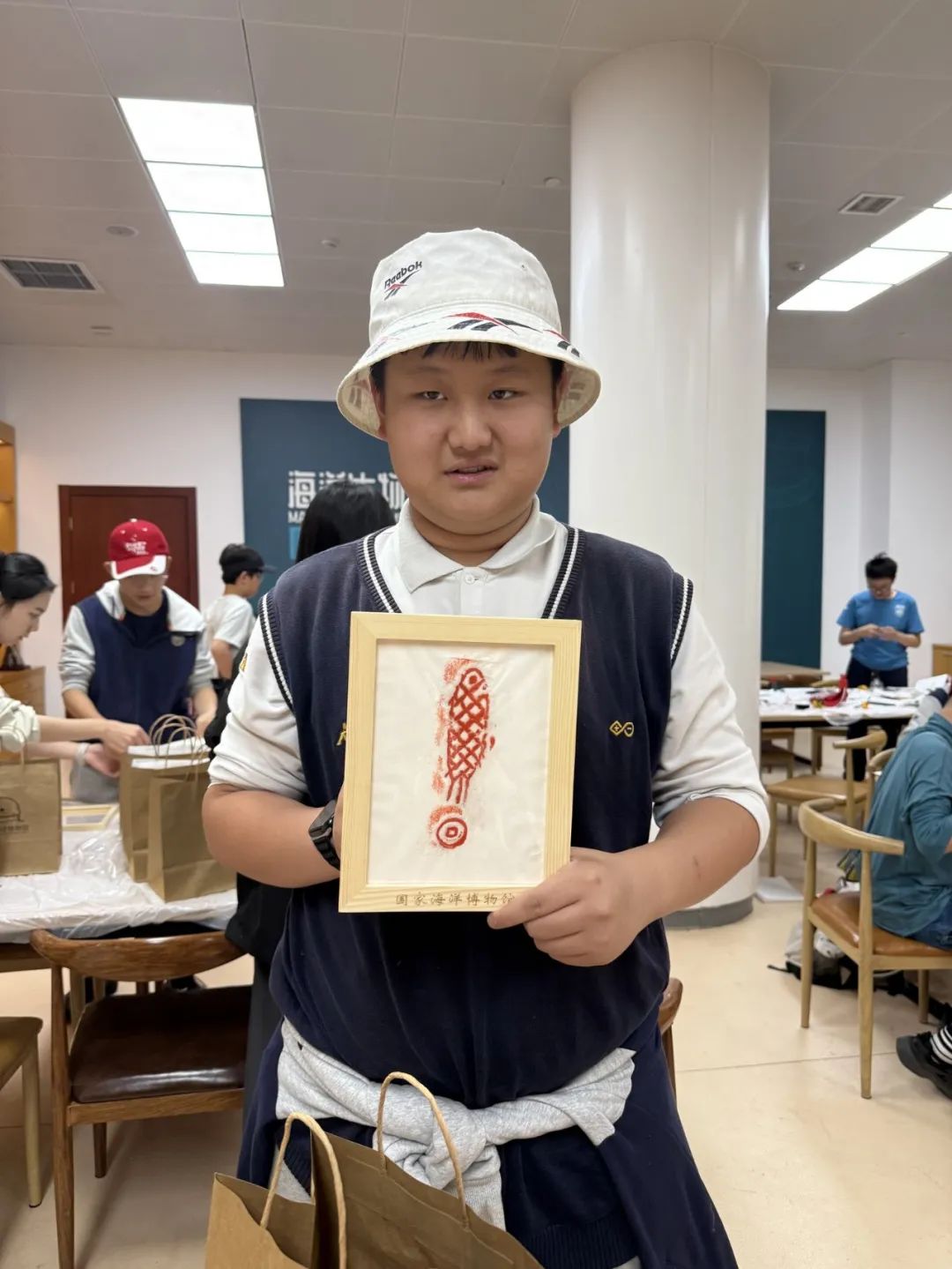 踏入北疆博物馆,陈列的古生物化石与民族文物仿佛时光的碎片。龙娃们围在讲解员身边,听三叶虫化石诉说远古海洋的故事,看少数民族服饰上的刺绣如何凝结着独特的文化密码。转身来到天津泥人张的工坊,指尖轻触细腻的彩泥,目睹老师傅寥寥数笔,便将历史人物、市井百态捏塑得栩栩如生。大家亲手尝试塑形,虽然手法稚嫩,却在欢笑中体会到非遗技艺的魅力。夜幕降临,一场非遗相声表演将欢乐推向高潮。台上演员妙语连珠,“说学逗唱” 间尽显传统曲艺的韵味,龙娃们笑得前仰后合,也在潜移默化中感受到语言艺术的博大精深。次日,国家海洋博物馆里,巨大的抹香鲸标本震撼人心,互动展区中,龙娃们亲手打开河蚌,体验从蚌中取珠的惊喜瞬间。